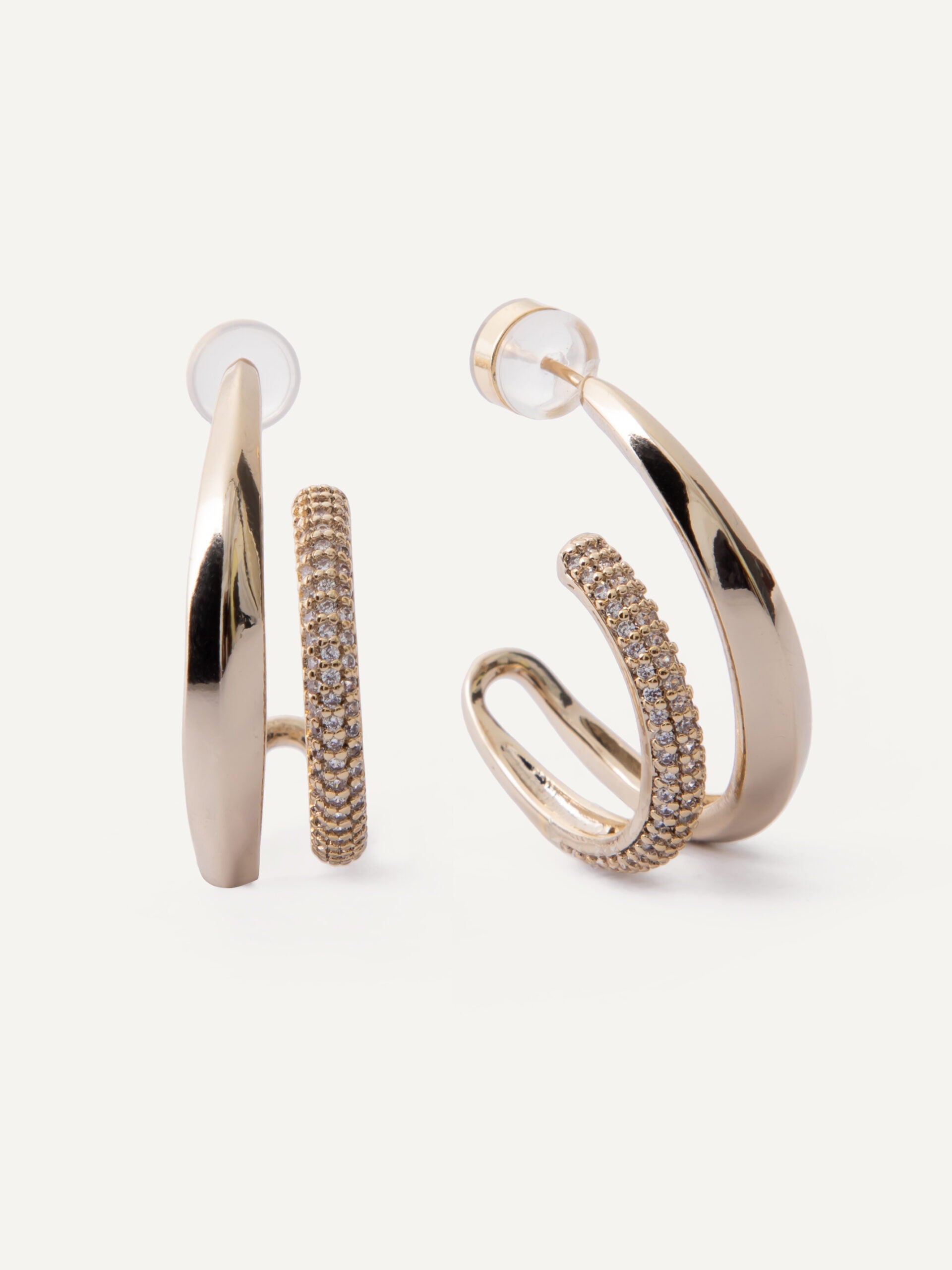 Timeless elegance with modern glamour: Double strand solid and pave earrings.