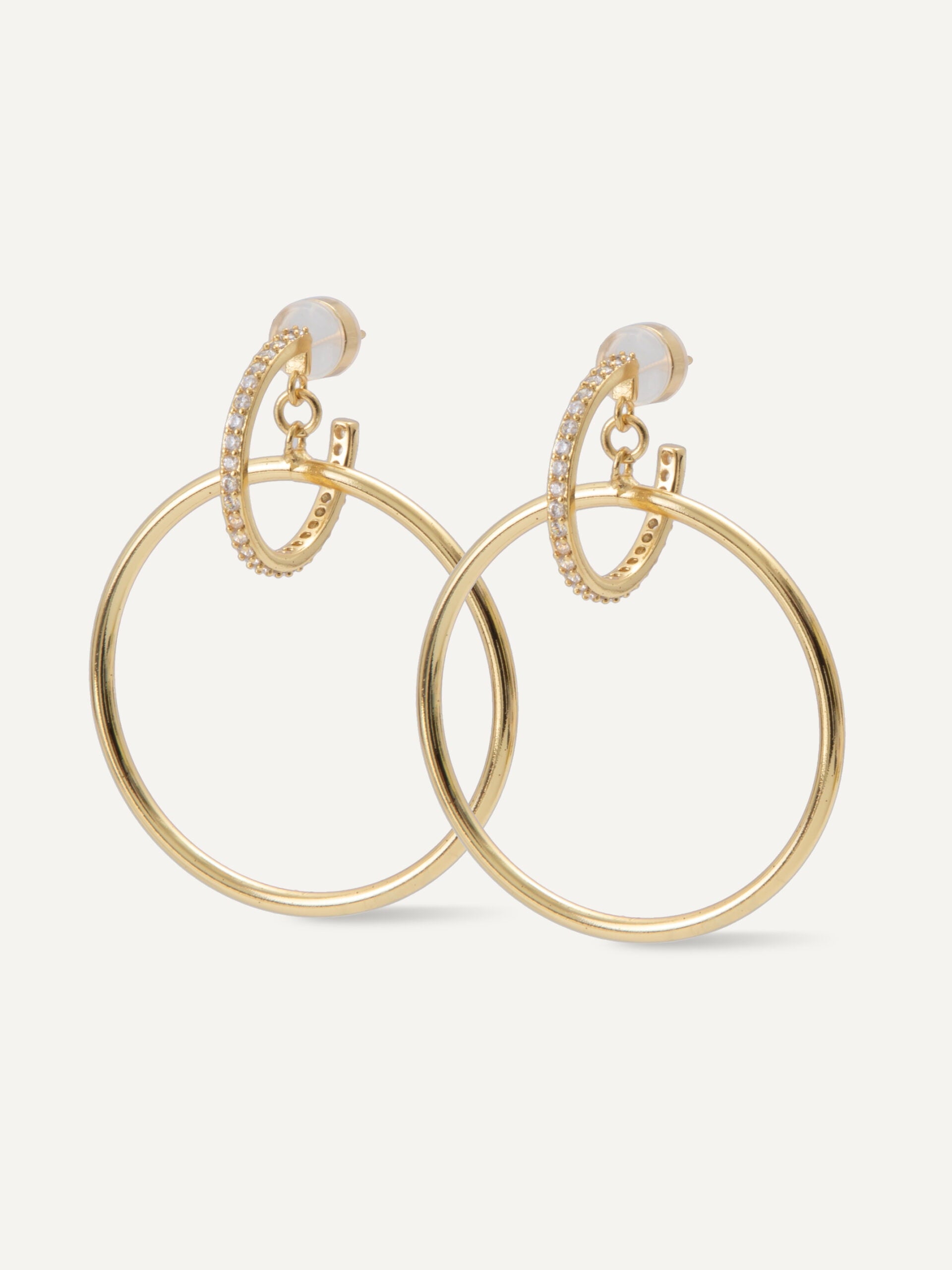 Elegant and classy hoop earrings. Cubic zirconia pave crystal hoop with larger solid hanging hoop.