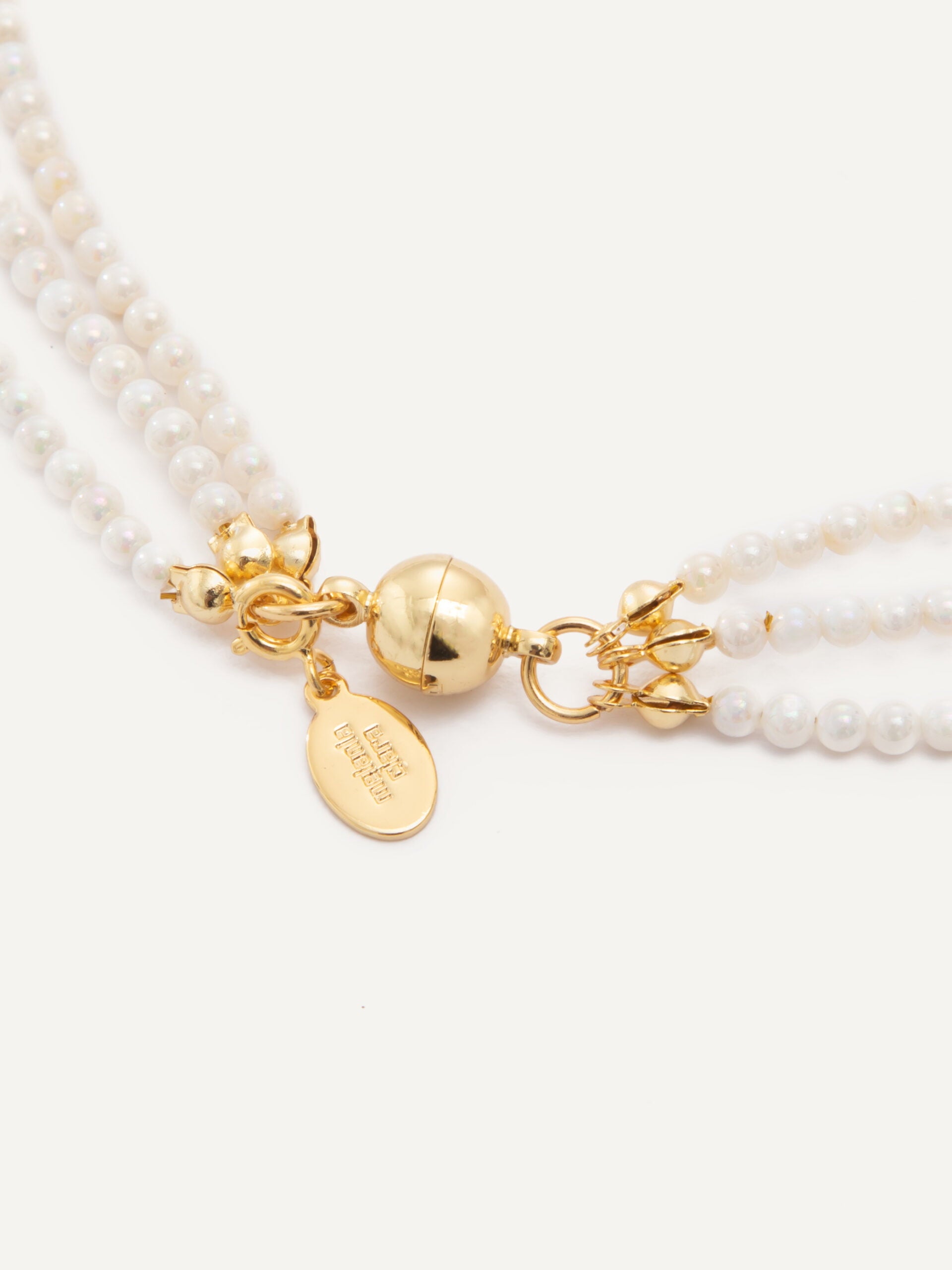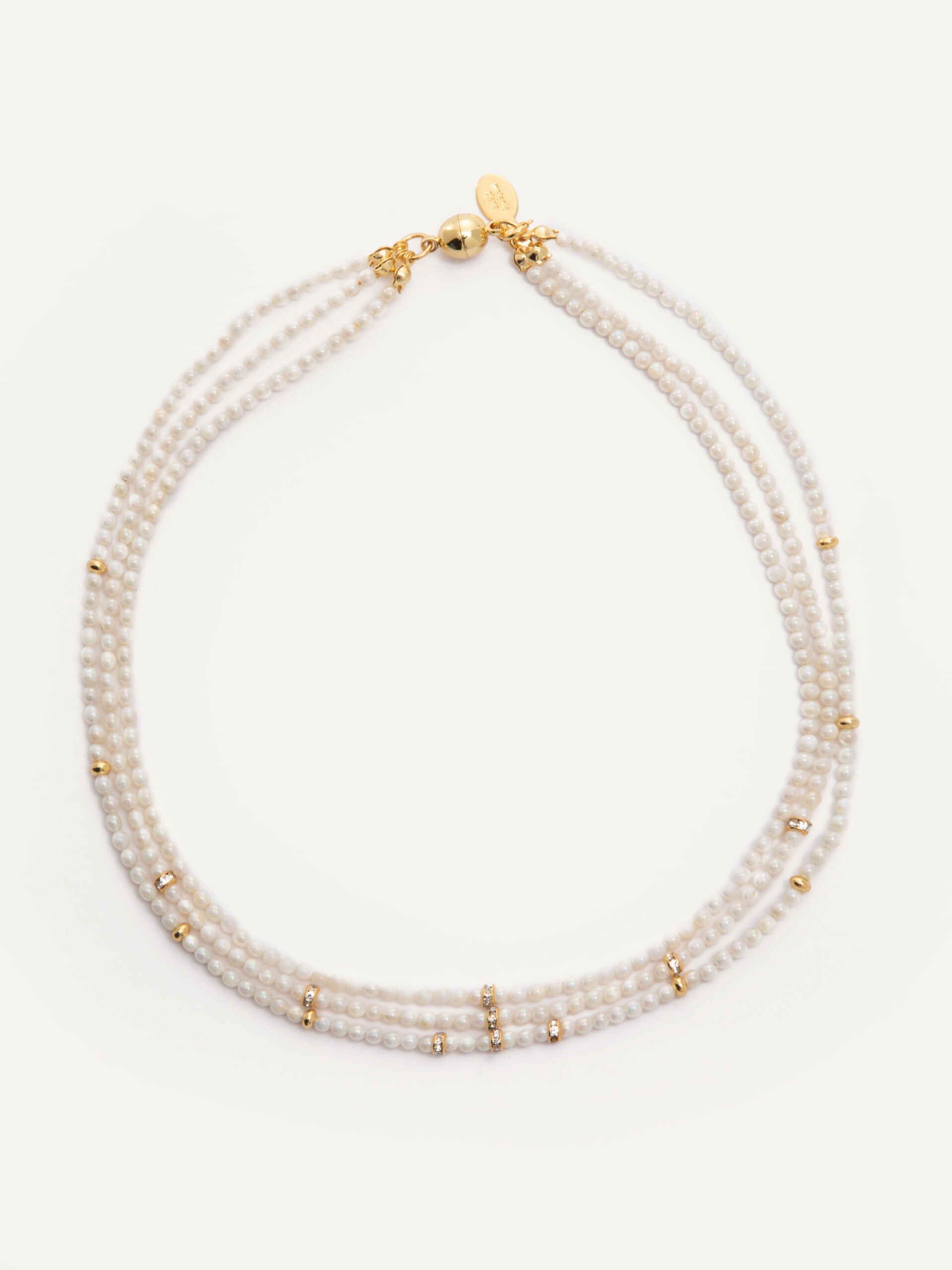 Triple layer shell pearl beaded necklace with Cubic Zirconia beads