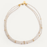 Triple layer shell pearl beaded necklace with Cubic Zirconia beads