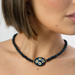 A bloom in the dark. Hand-strung with deep faceted beads and finished with a bold floral crystal centerpiece, the Moonflower necklace brings a touch of wild magic to any look. Finished with our signature magnetic clasp for easy on and off.