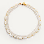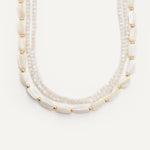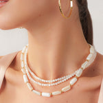 Nina features three layers of luminous freshwater pearls in varied sizes, accented with gold-toned beads for a soft glow. The boldest strand is fully detachable, giving you the freedom to wear it as a statement piece, a delicate double layer, or a minimalist single strand. Elegant, versatile, and made to move with your mood.