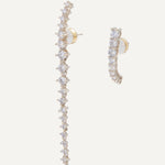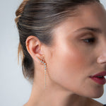 The Athalia earrings are a statement of elegance with a touch of spontaneity. A playful and trendy duo featuring one thin elongated stud and one dangling strand.