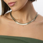 Reimagine classic elegance with our unique take on the must-have snake chain. The sleek, sinuous detail create a refined silhouette, adding a touch of modernity to a beloved classic.