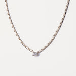 Dainty chain with solid rectangle links and rectangle crystal connector pendant.