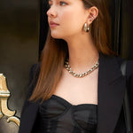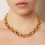 Timeless elegance with a modern edge: Chunky chain necklace with large protruding handset crystals.