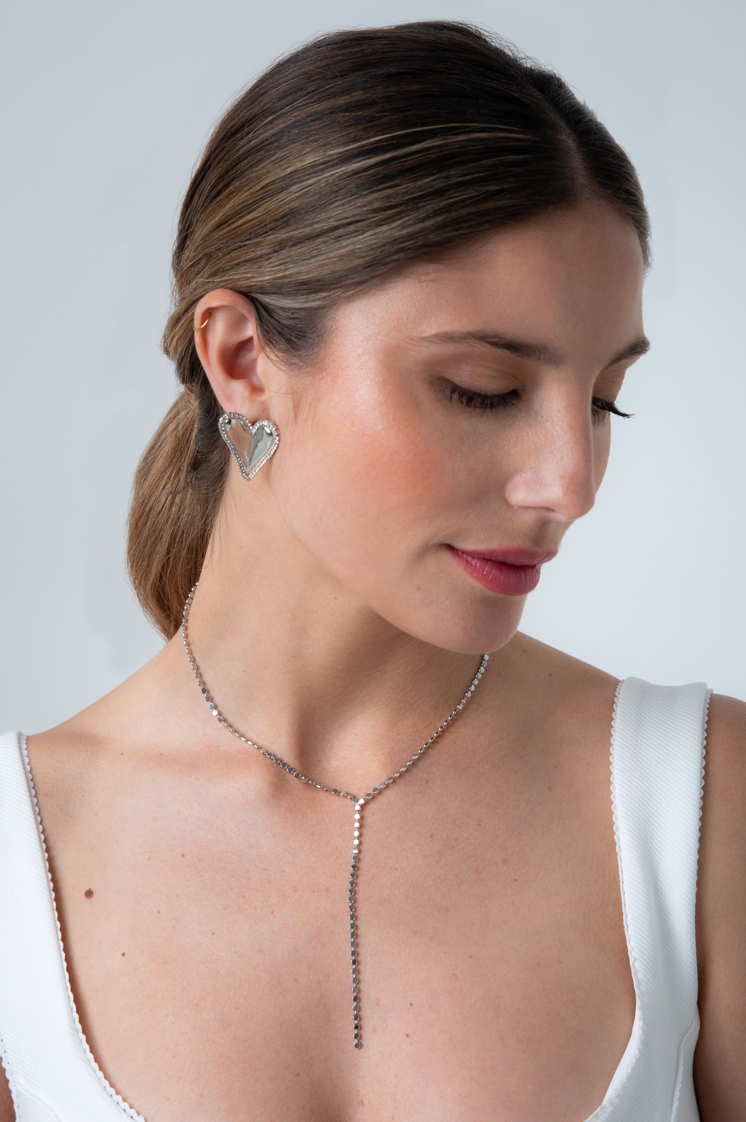 Large statement heart stud earring with Cubic Zirconia crystals