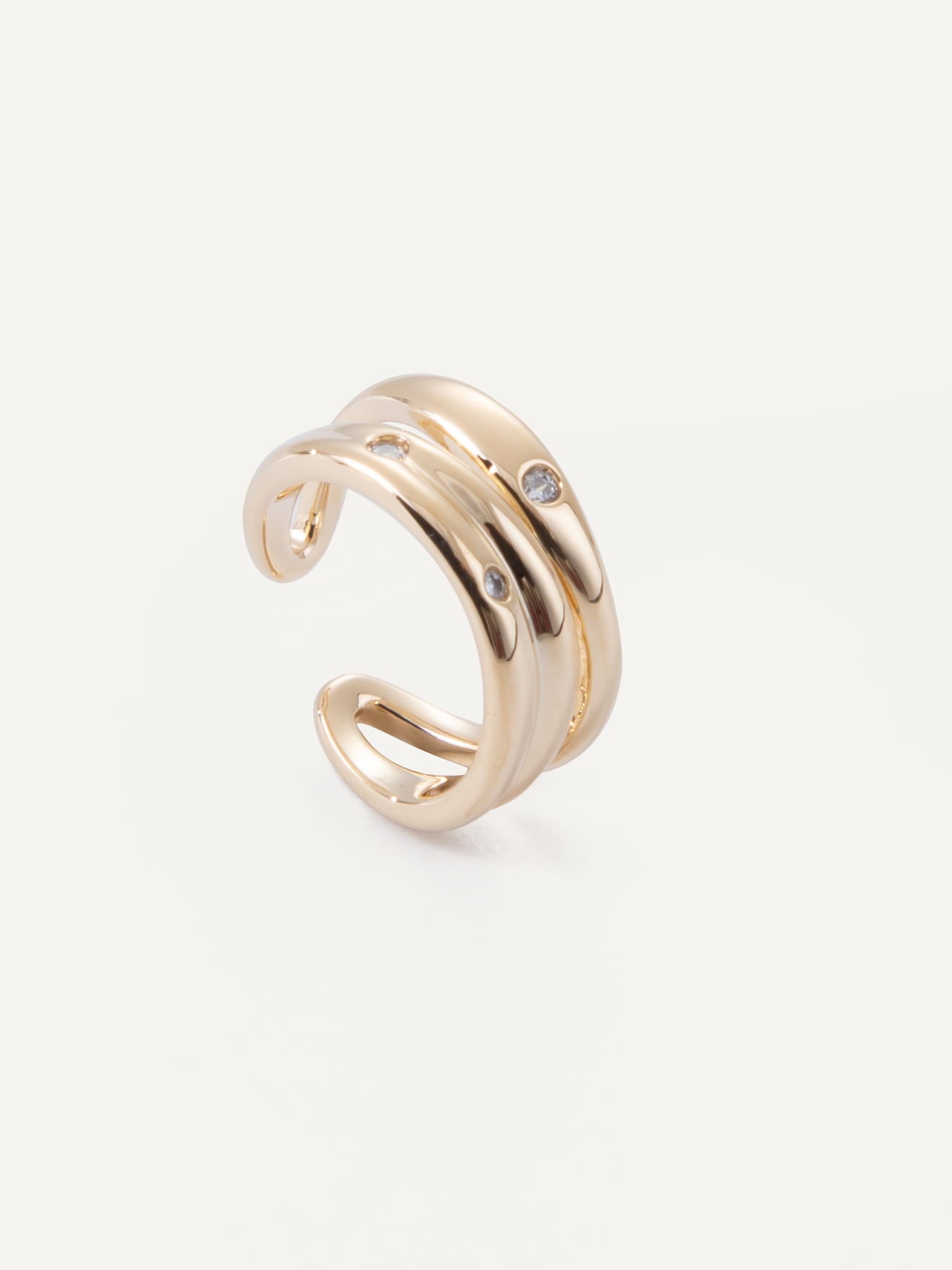 Solid tri-layer ear cuff with cubic zirconia crystal details