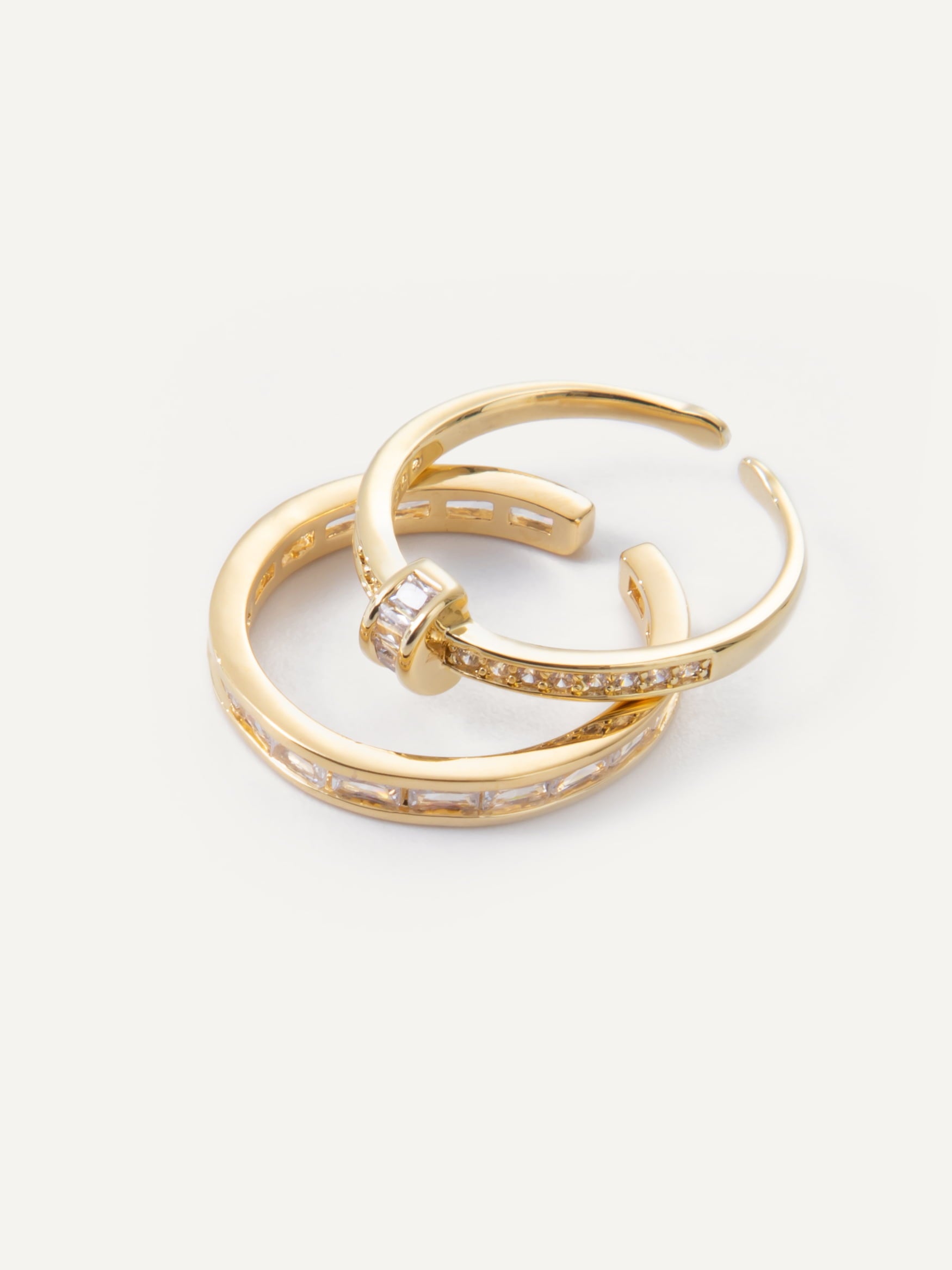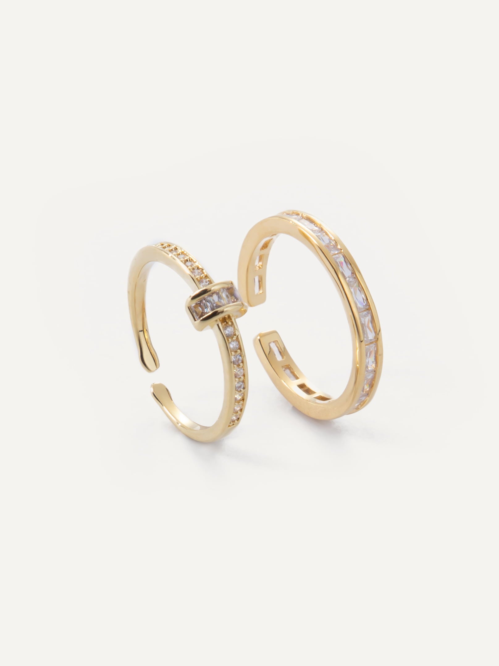 Master the art of ring stacking with our Zuri set of 2 rings with cubic zirconia pave and baguette crystals