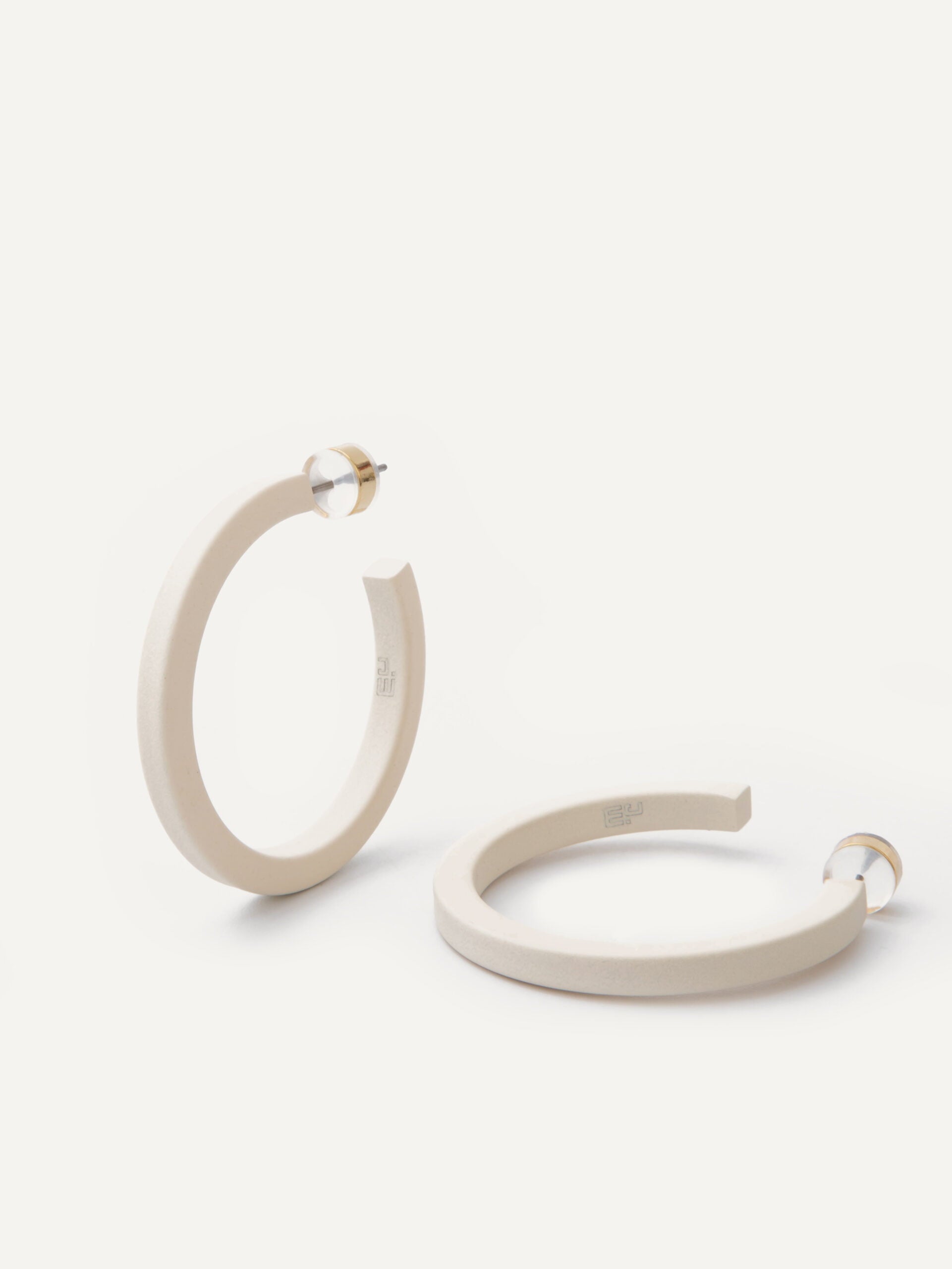 Flat thick round earring hoops that are the epitome of trendy comfort for their unique style and astonishing light weight.