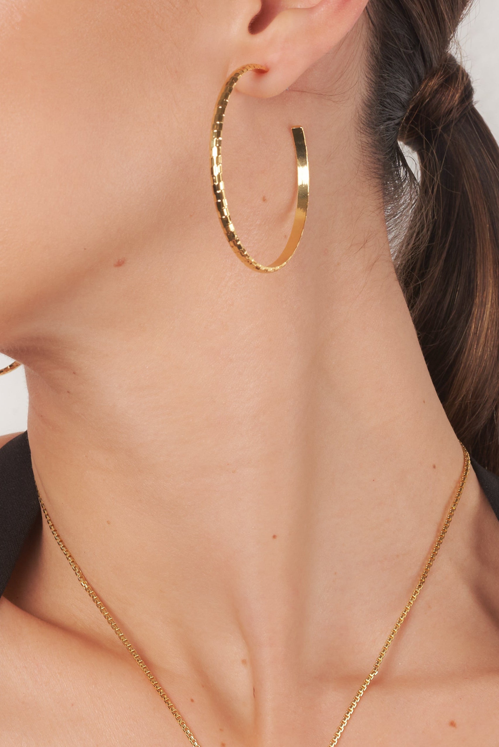 Thin textured hoop earrings. Lightweight.