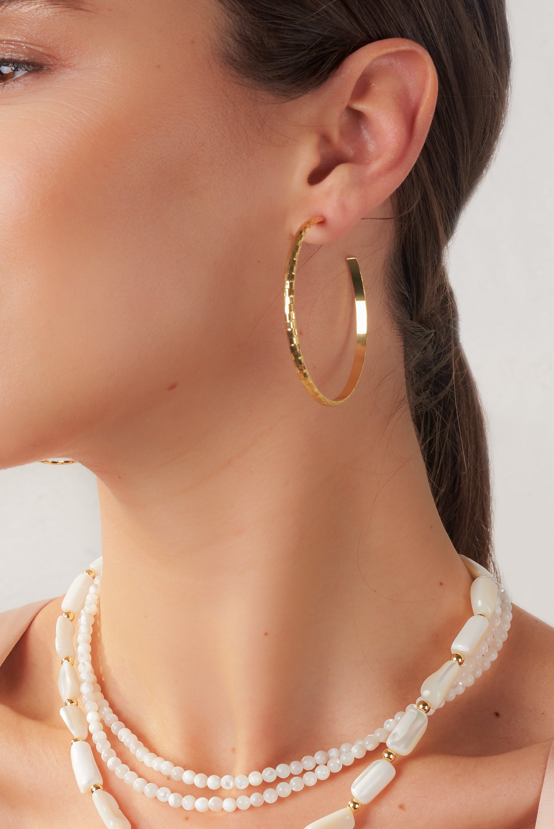Thin textured hoop earrings. Lightweight.