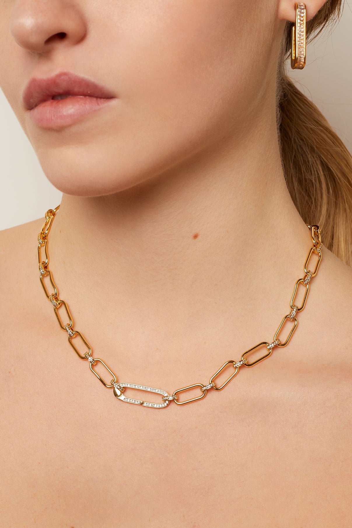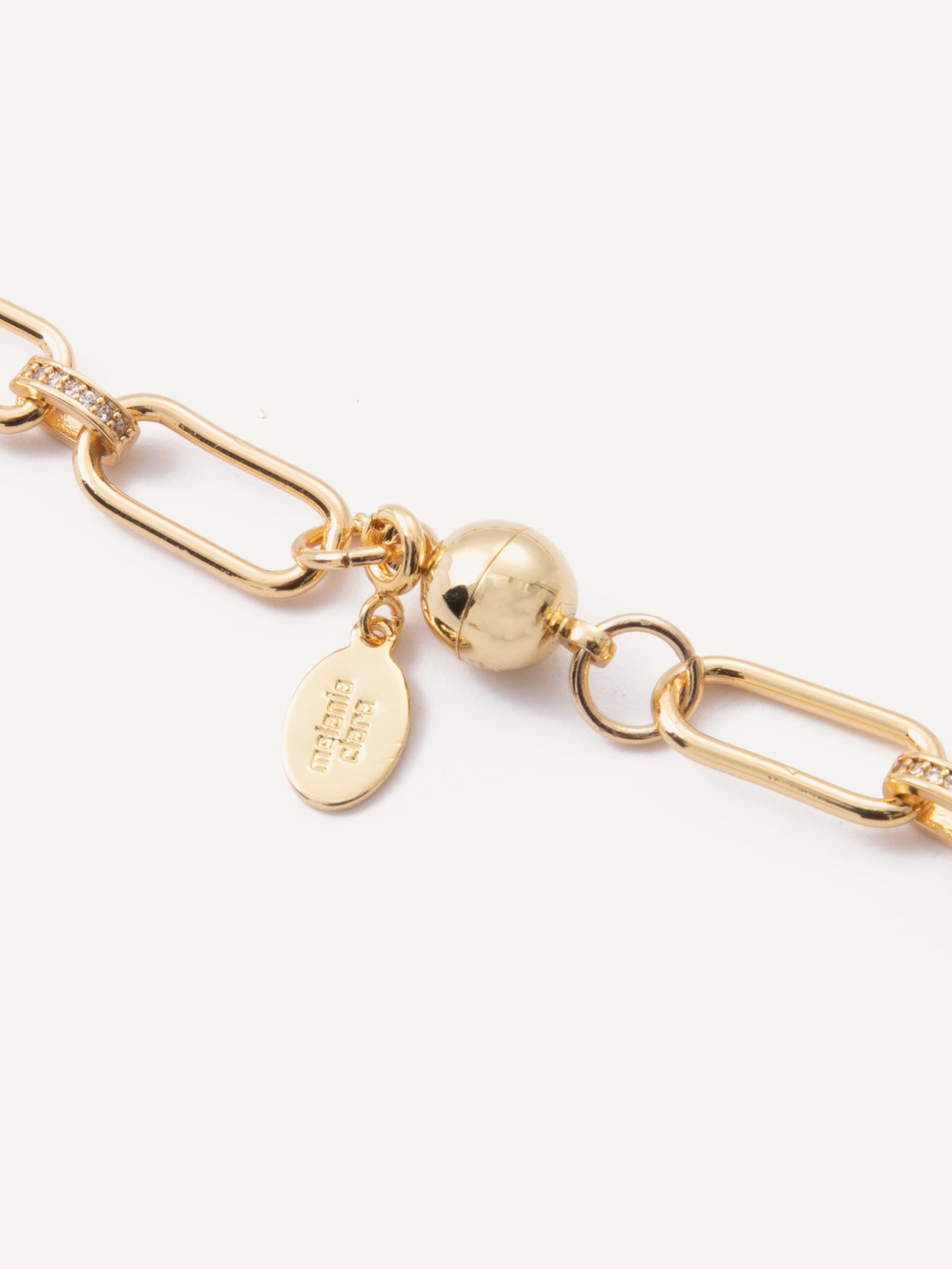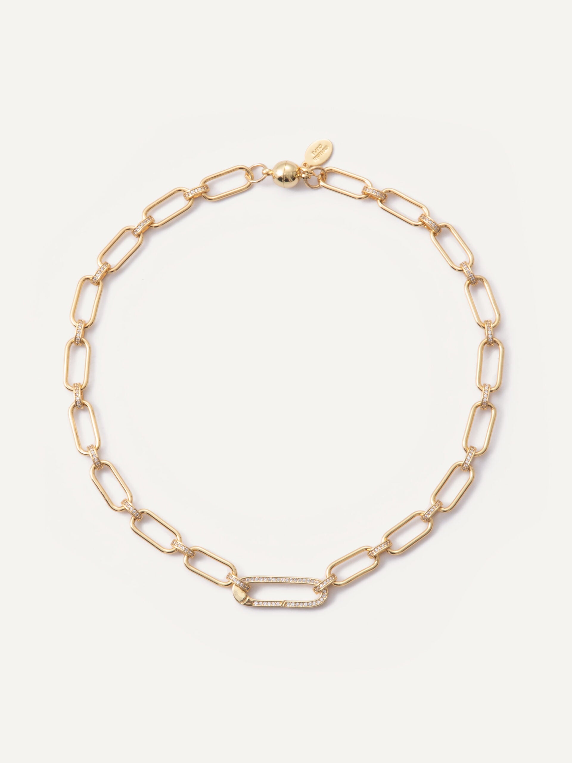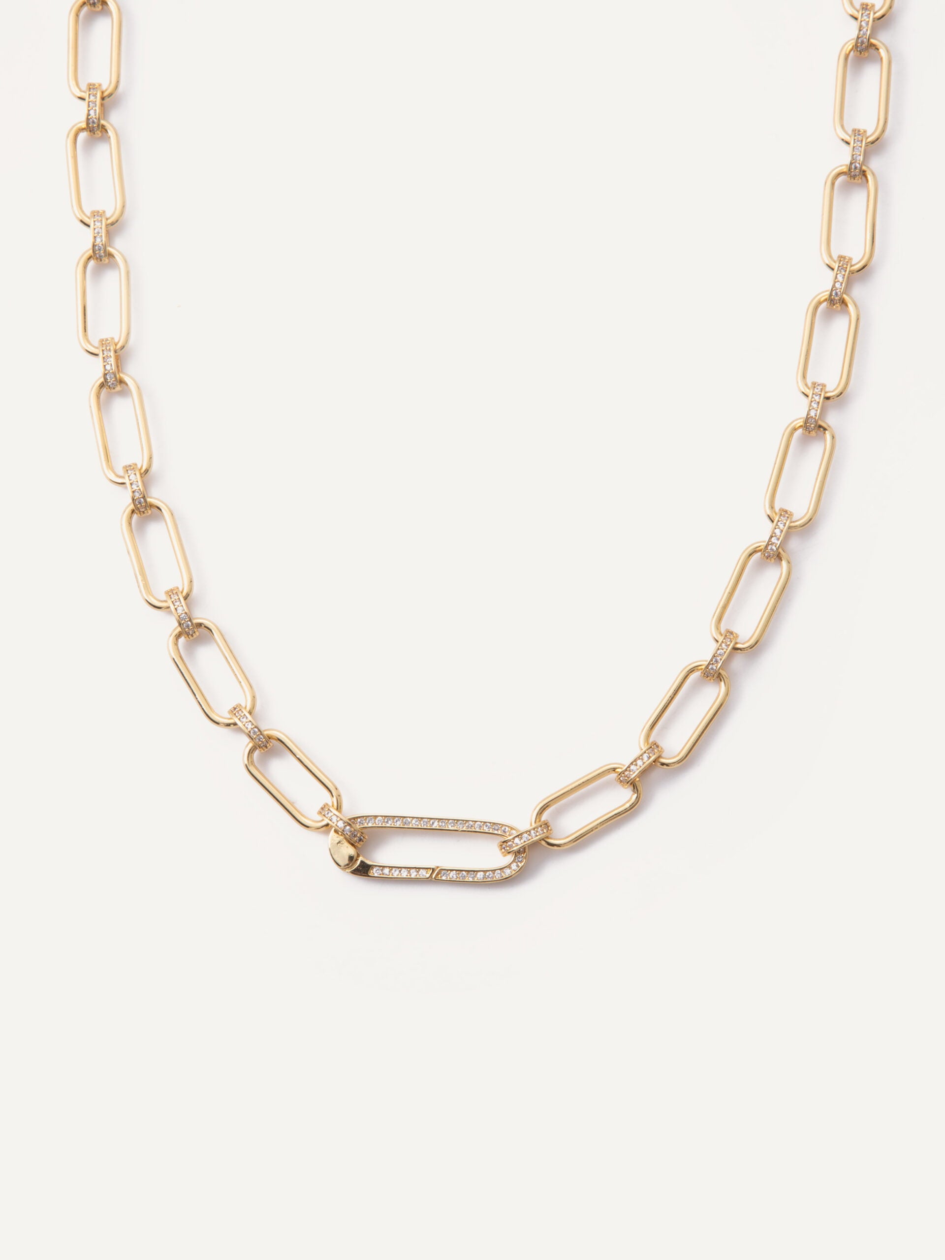 Achieve the quiet luxury elegance with this dainty paper clip chain with subtle cubic zirconia crystal accents. Use the functional clasp in the front to add your favorite pendants for a different look.
