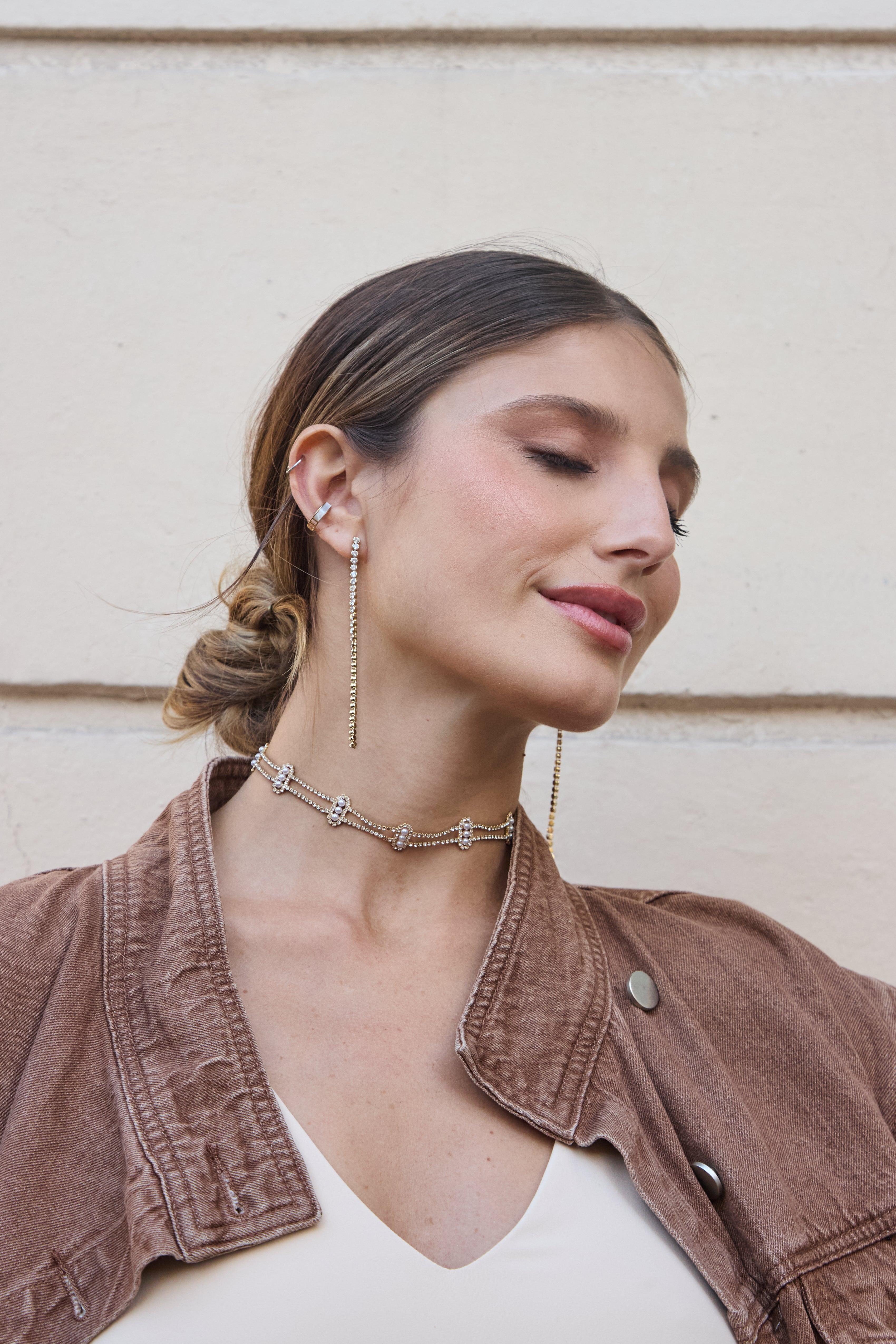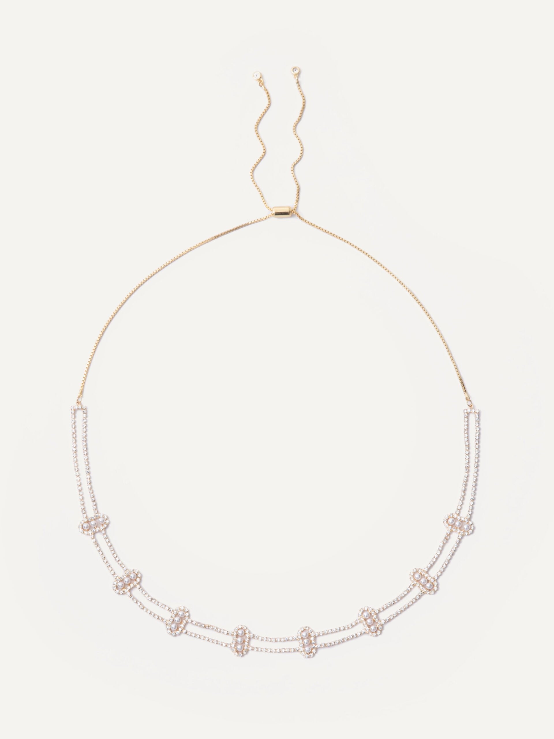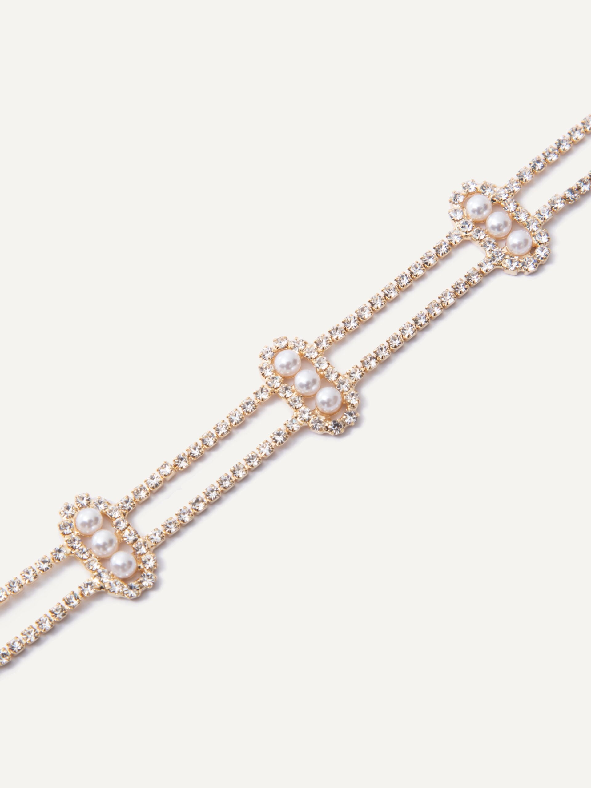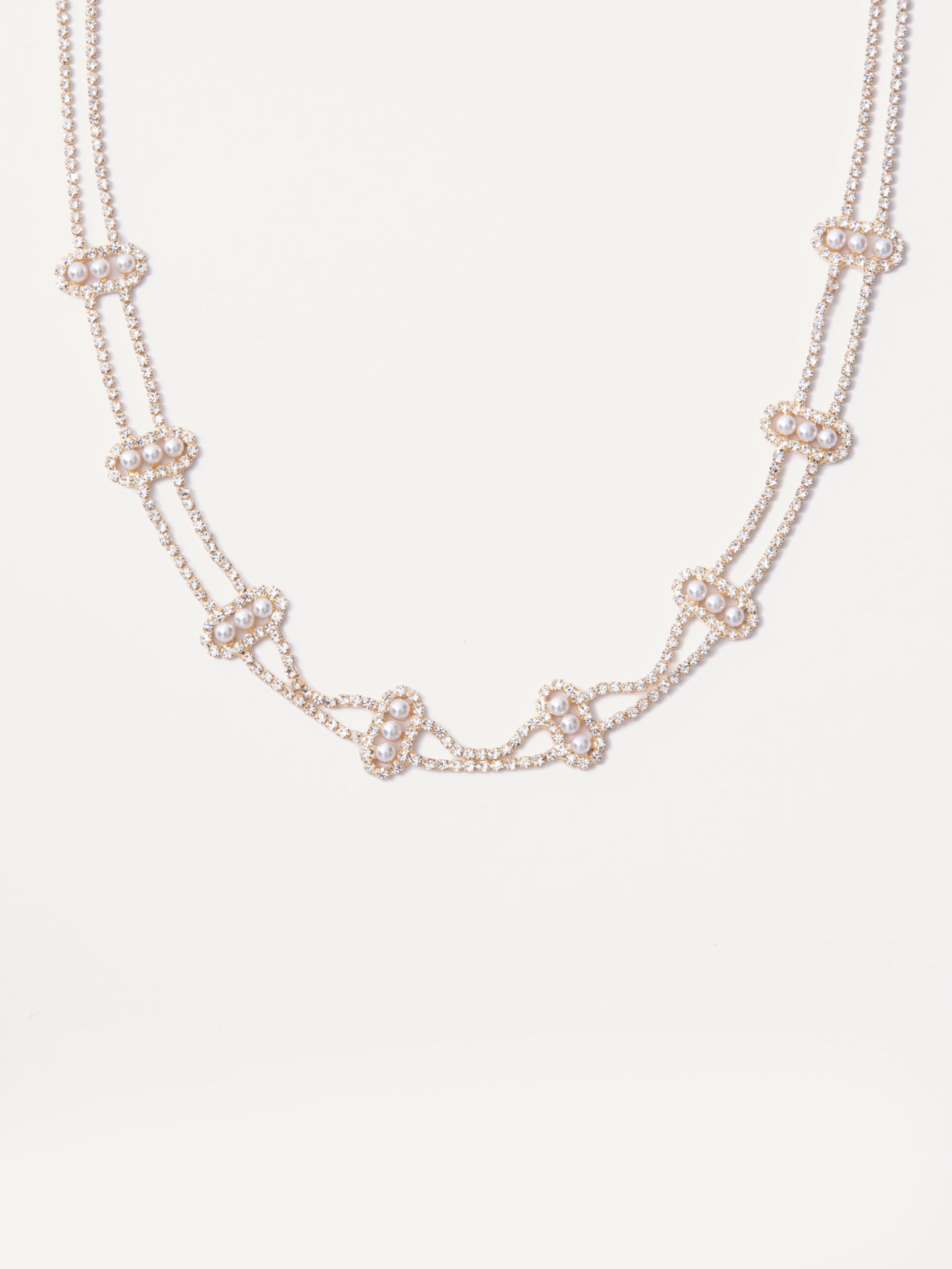 Transport yourself to the glamour of old Las Vegas with our vintage inspired choker. This exquisite piece combines the timeless elegance of pearls with the dazzling sparkle of cubic zirconia crystals, capturing the essence of a bygone era.