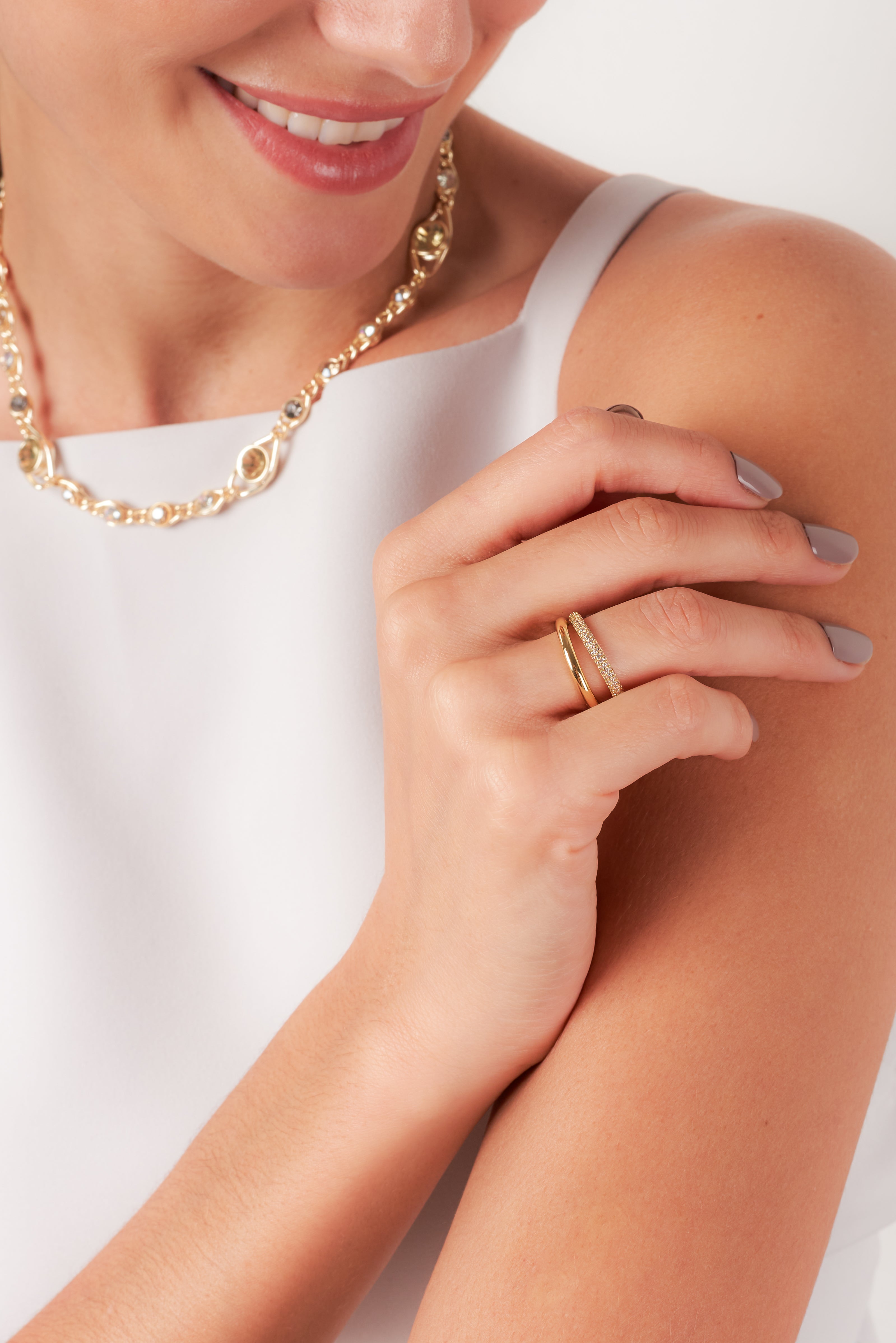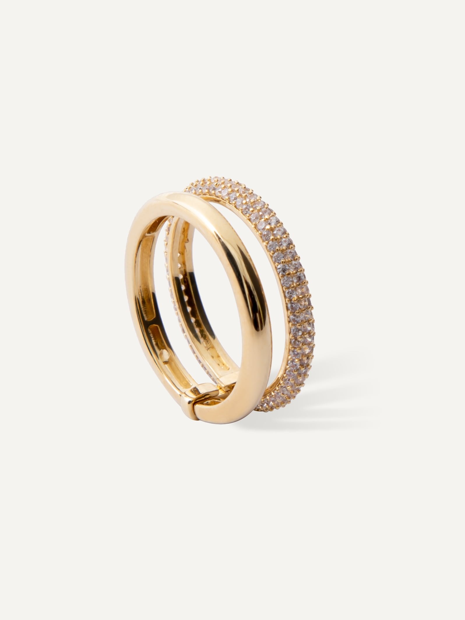 Double layer ring with a Cubic zirconia pave crystals eternity band and a solid strand