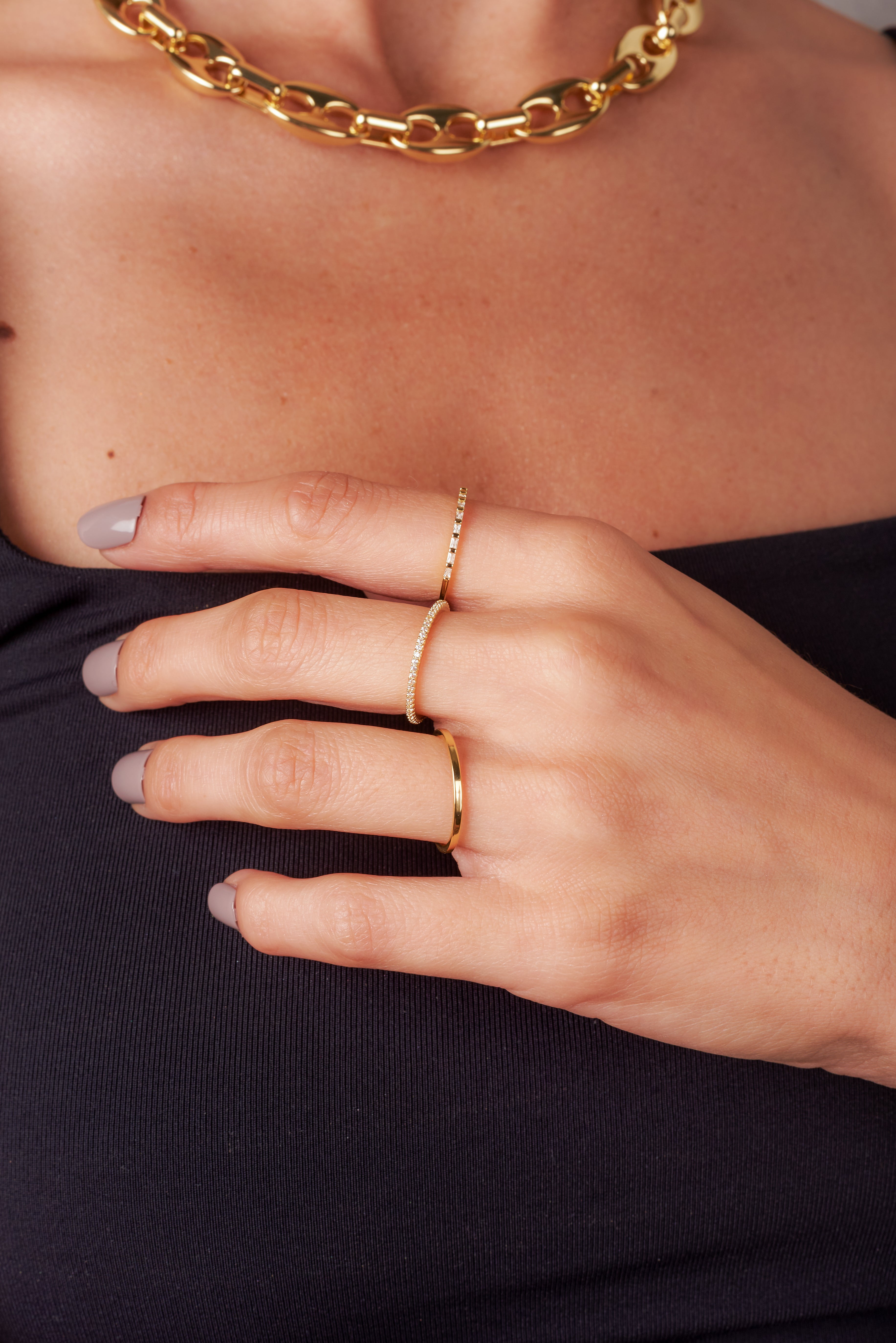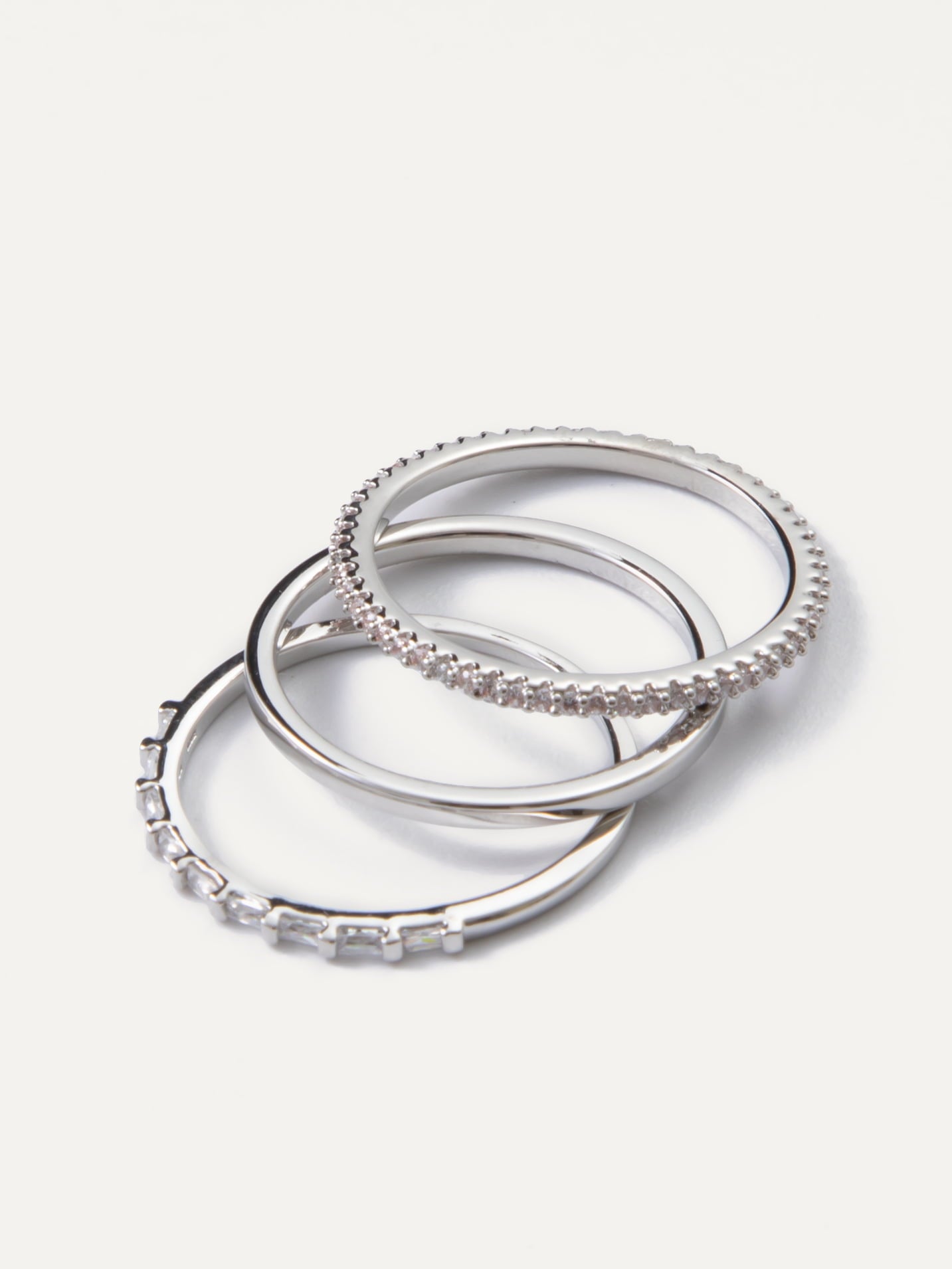 This set of 3 rings with pave cubic zirconia crystals invites you to master the art of stacking rings, allowing you to create a personalized and chic statement on your fingers. Mix and match to express your unique style.