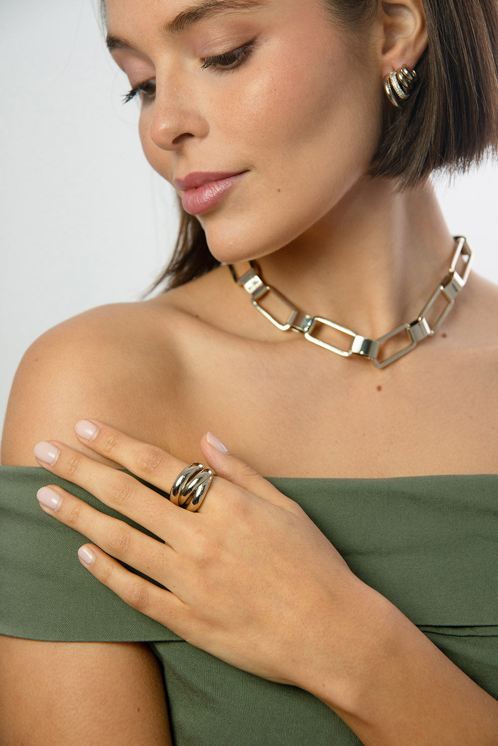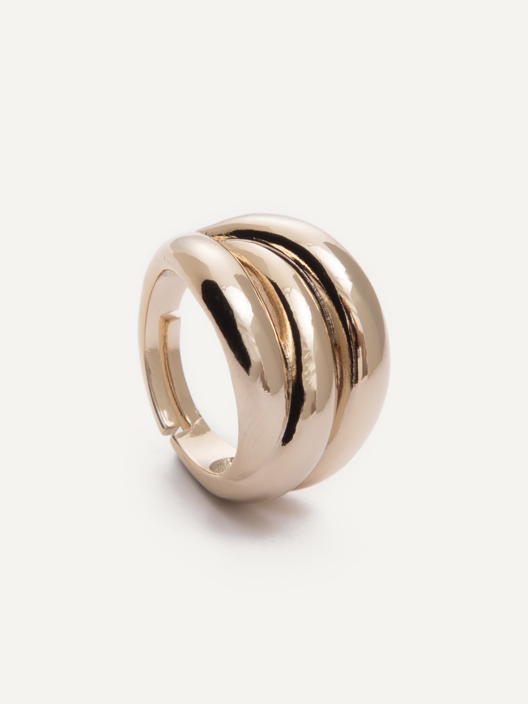 Introducing our limited edition Wynn ring: a stunning piece that features three sleek bands seamlessly fused with a smooth, glossy deep red metallic finish.