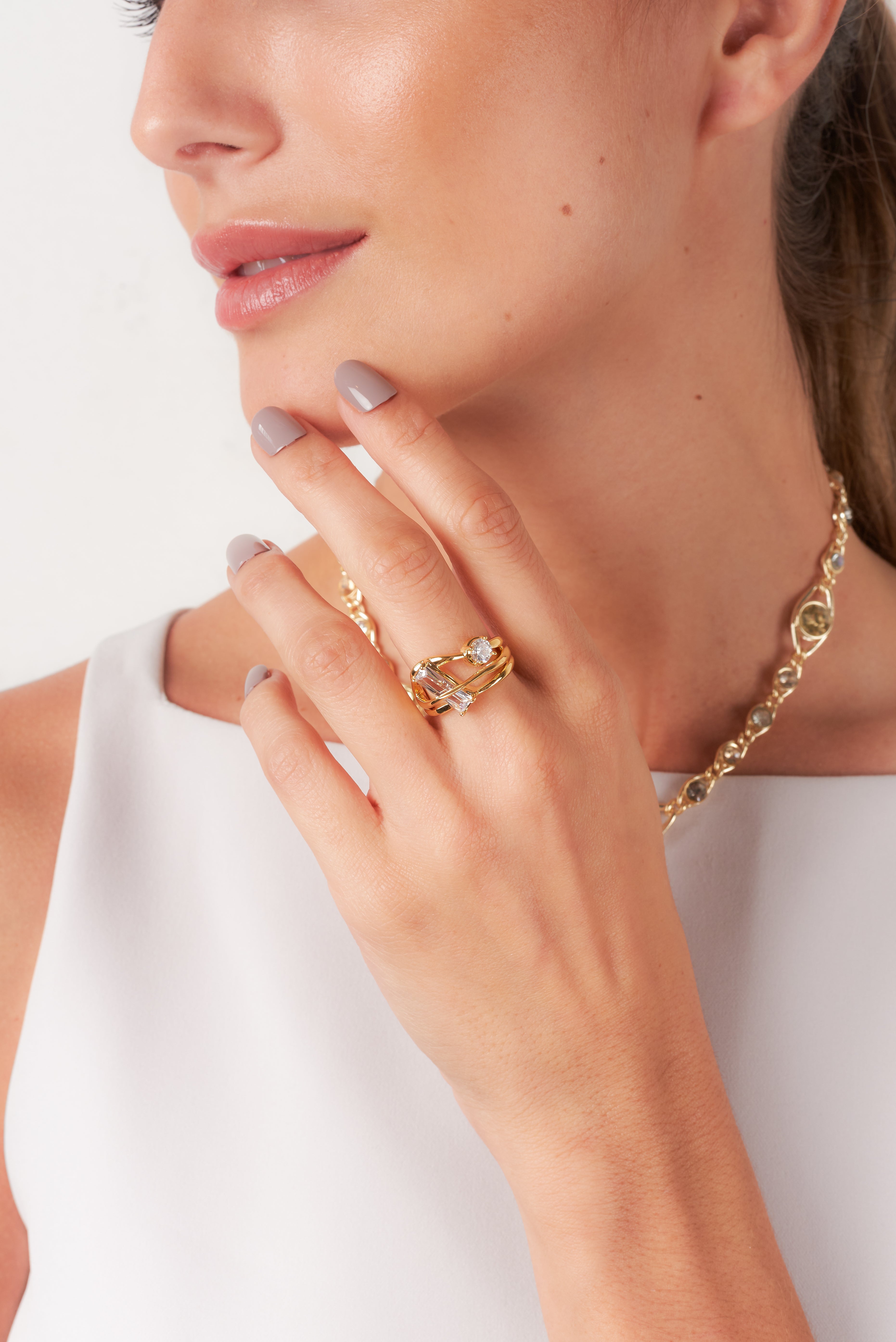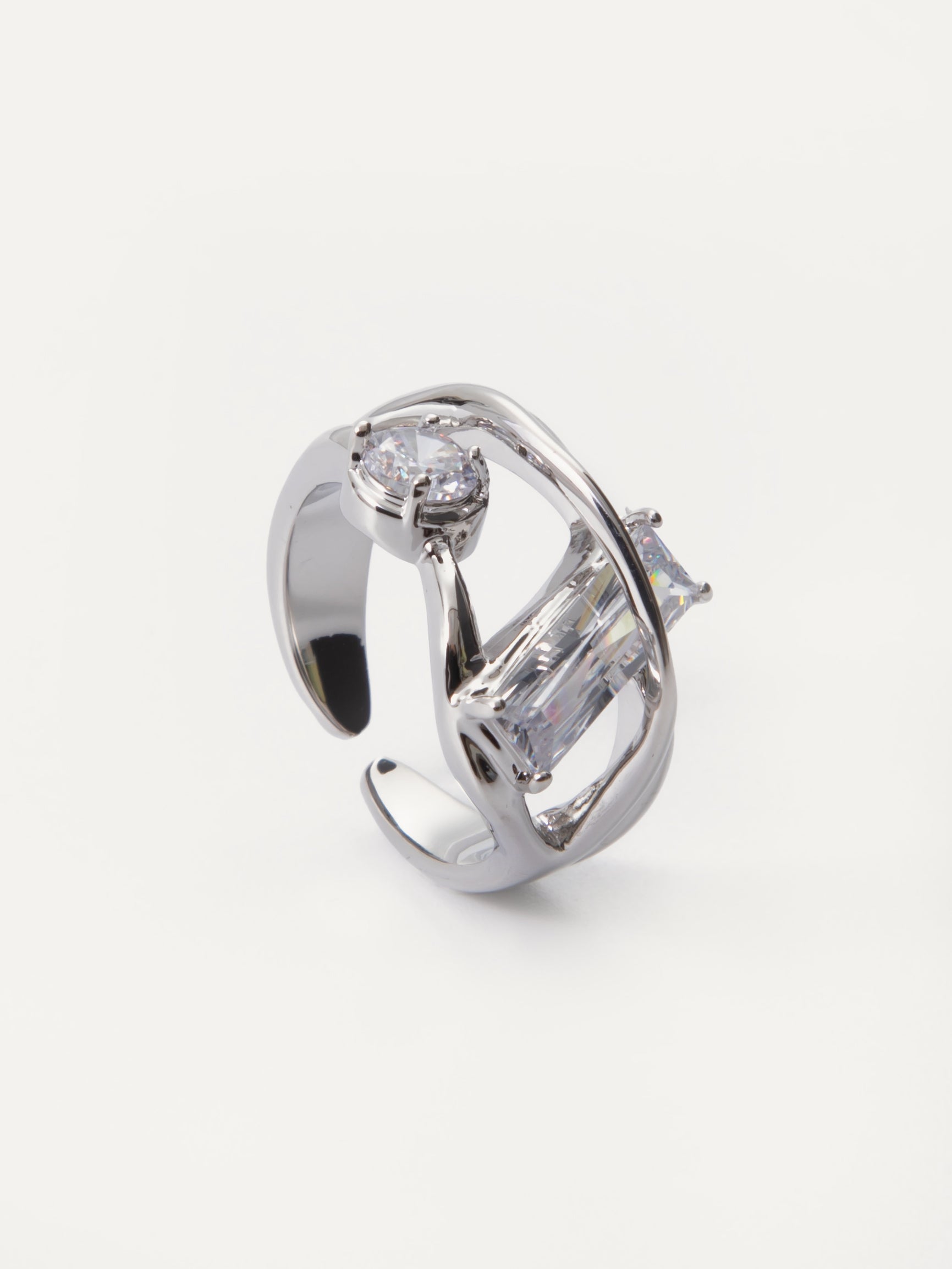Irregular double band ring with cubic zirconia crystals studded to catch the light and make a statement