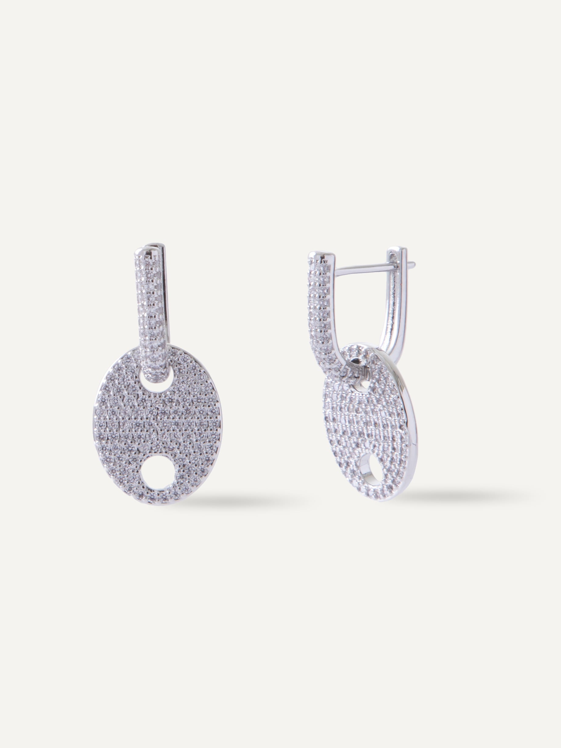 Cubic zirconia pave crystal earrings with mariner link pendant.