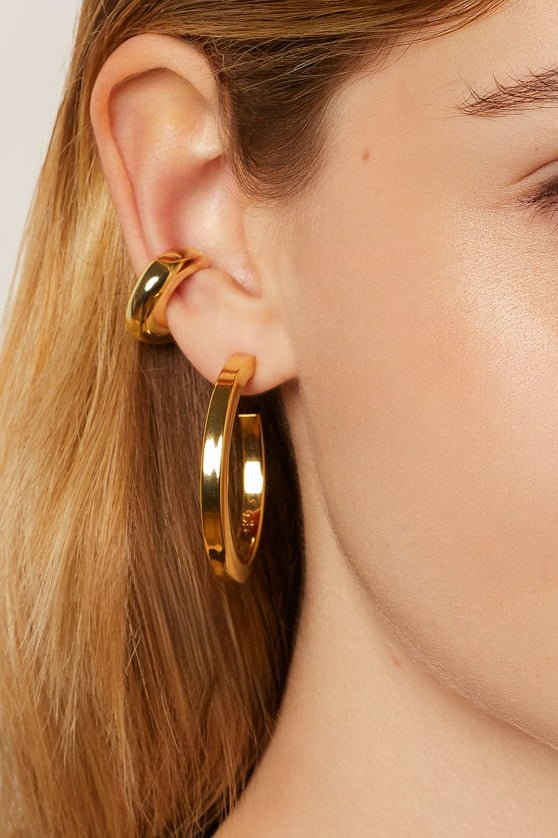 Flat thick round earring hoops that are the epitome of trendy comfort for their unique style and astonishing light weight.