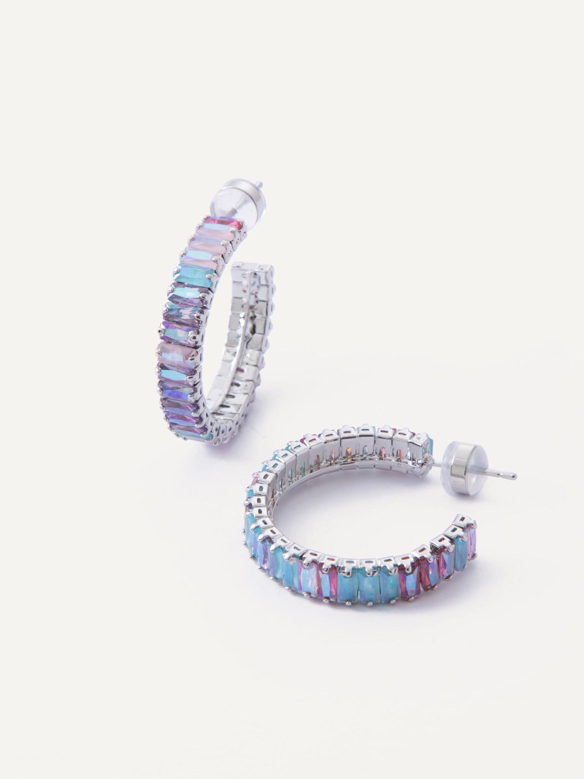 Dainty baguette cubic zirconia iridescent crystals earring hoops