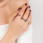 Introducing our set of six dainty rings, adorned with enamel and cubic zirconia pave crystals in neutral hues. These rings are a delicate celebration of elegance and versatility. Mix and match to create your own unique combination and embrace the timeless allure of neutral colors with a hint of sparkle.
