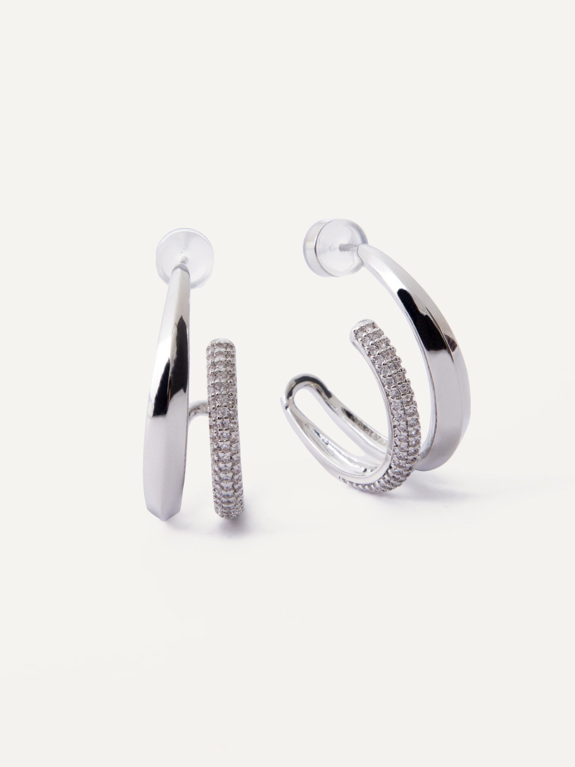 Timeless elegance with modern glamour: Double strand solid and pave earrings.