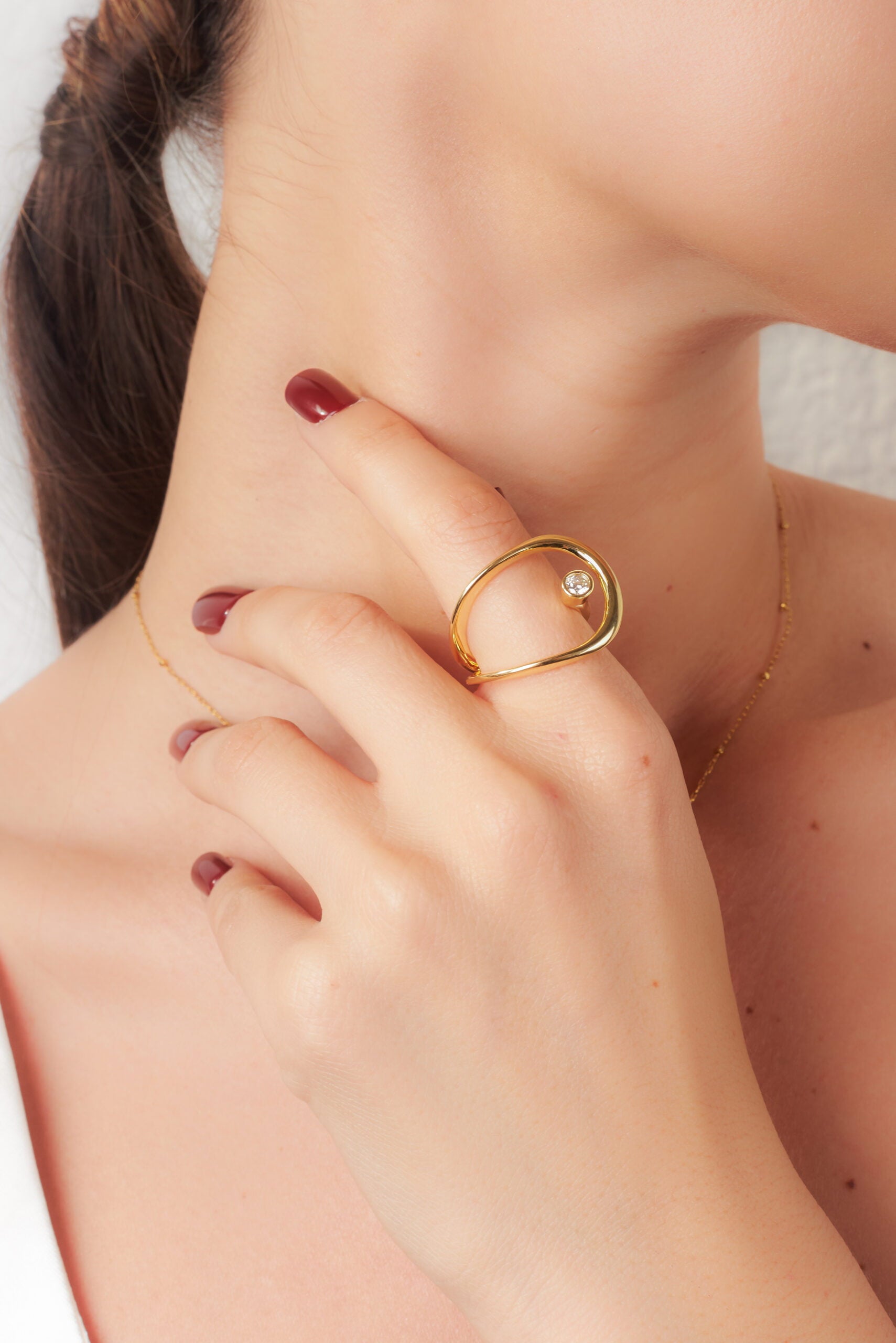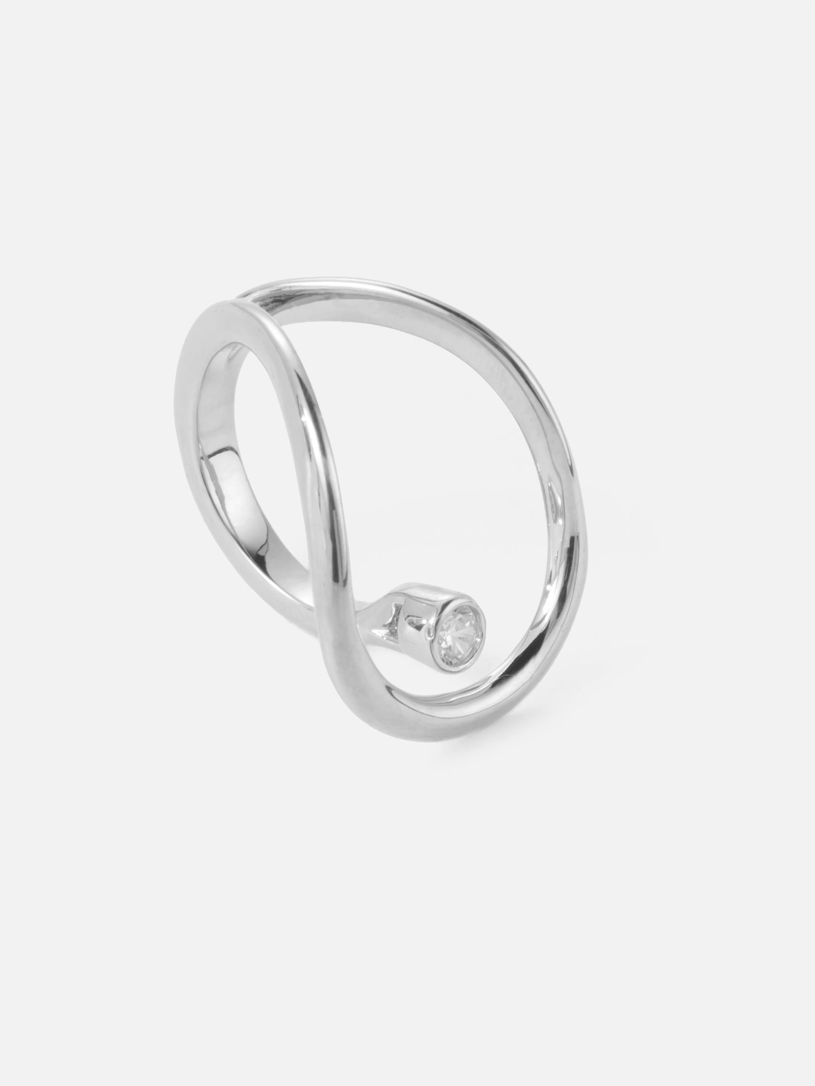 Explore modern geometry with our Galaxy Ring featuring a crystal stud. This sleek and stylish ring wraps your finger in contemporary design, effortlessly combining simplicity with a touch of sparkle.