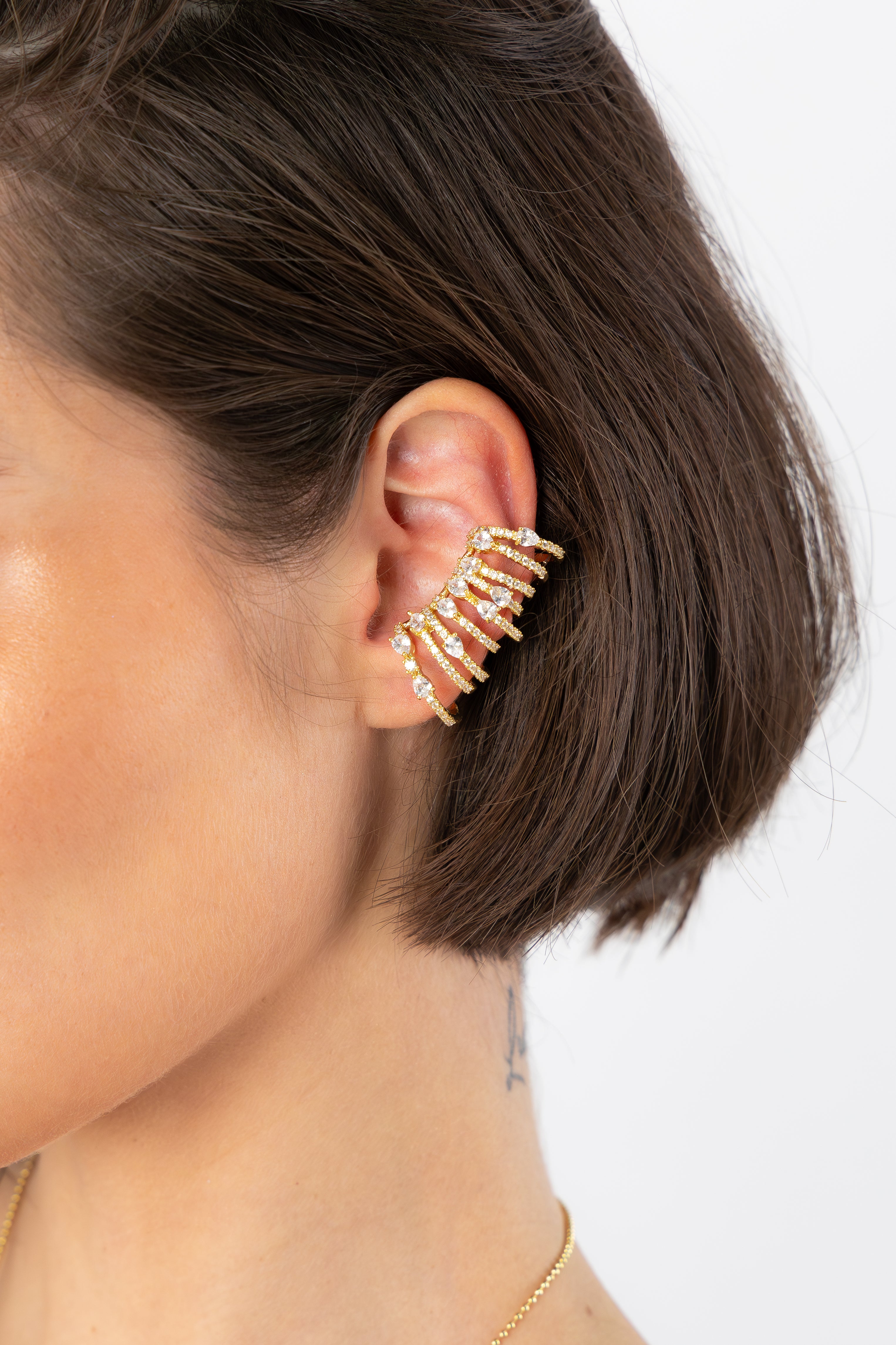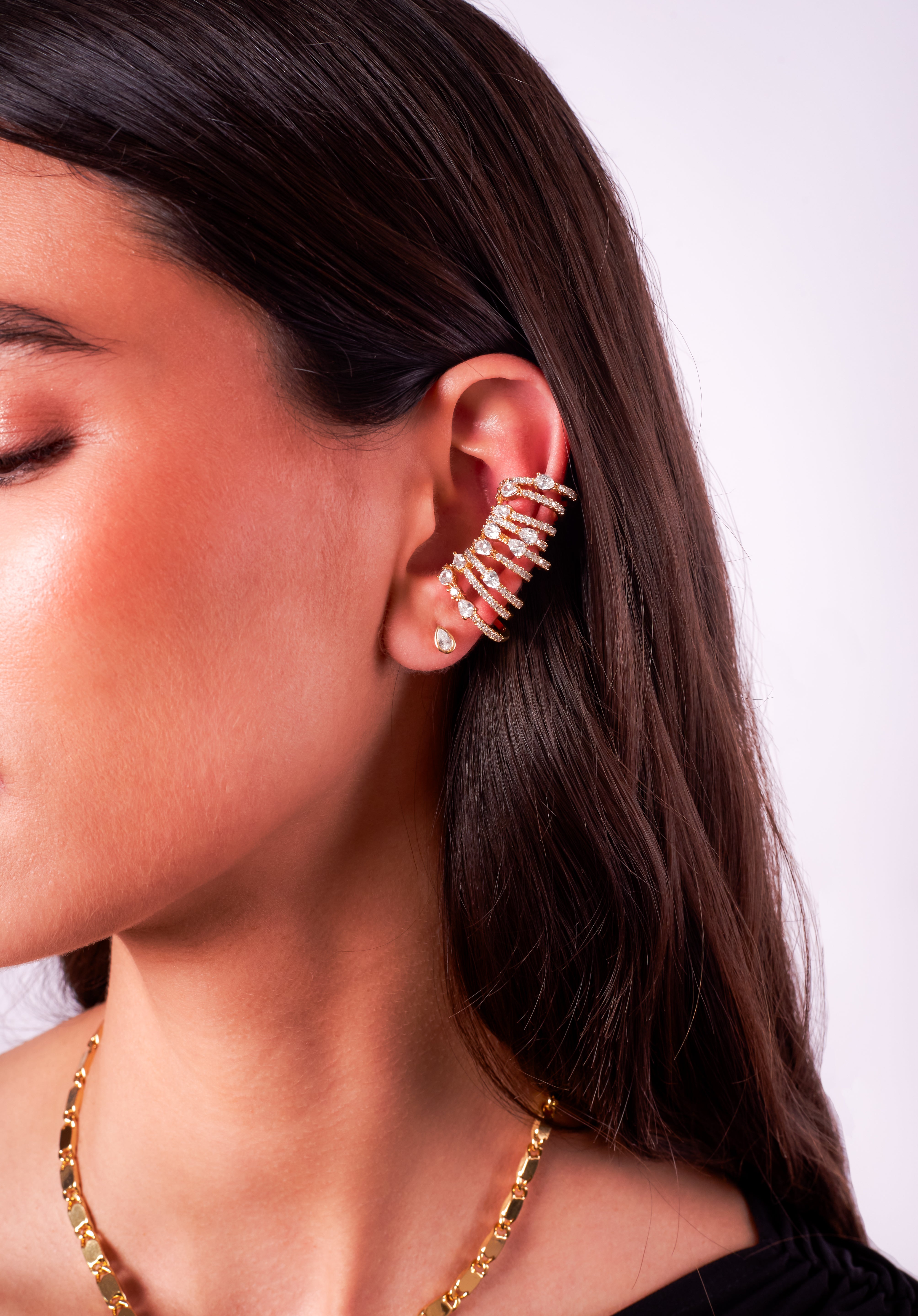 Multilayer climber ear cuff with cubic zirconia pave crystals