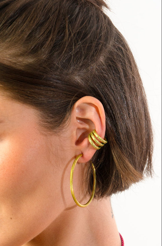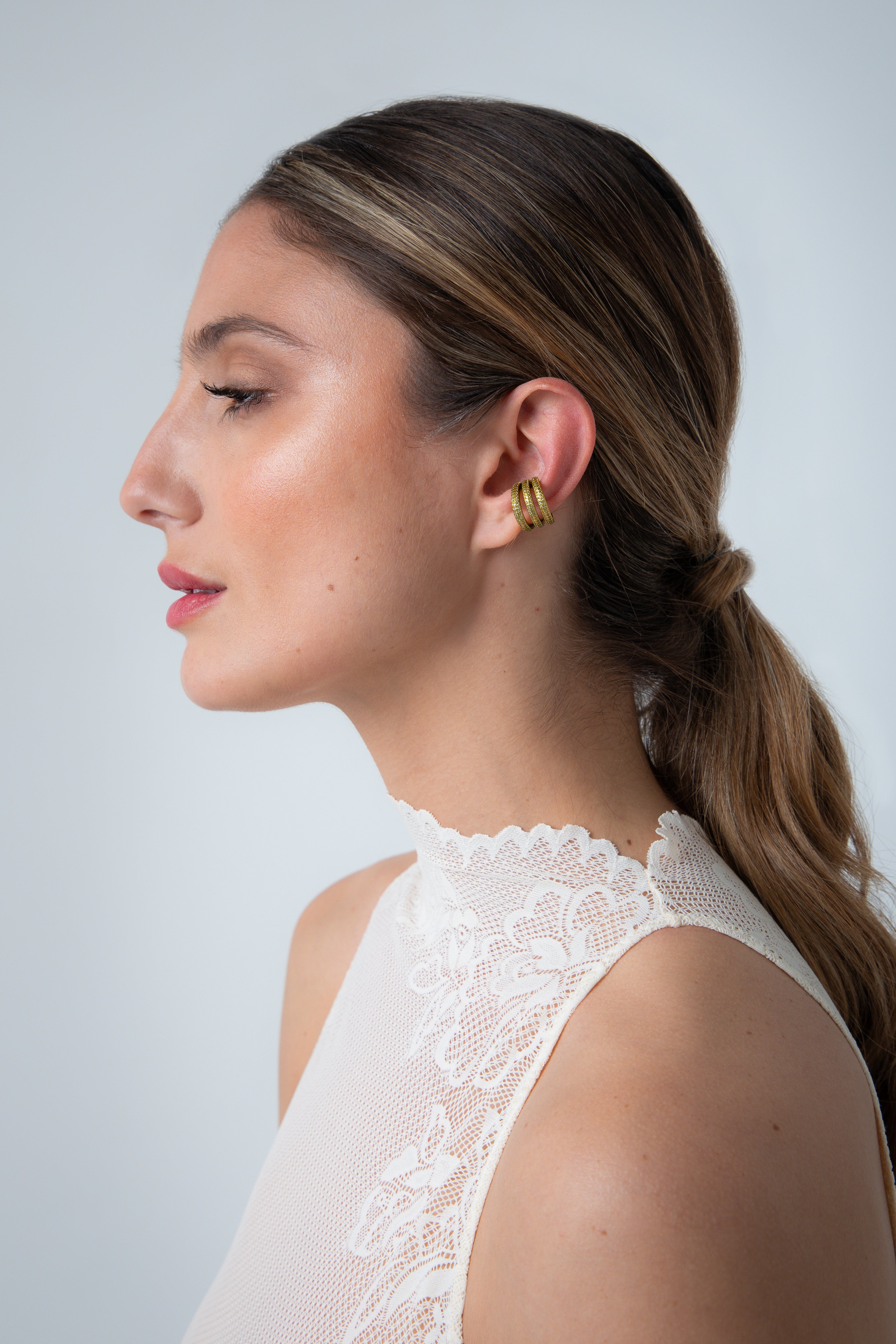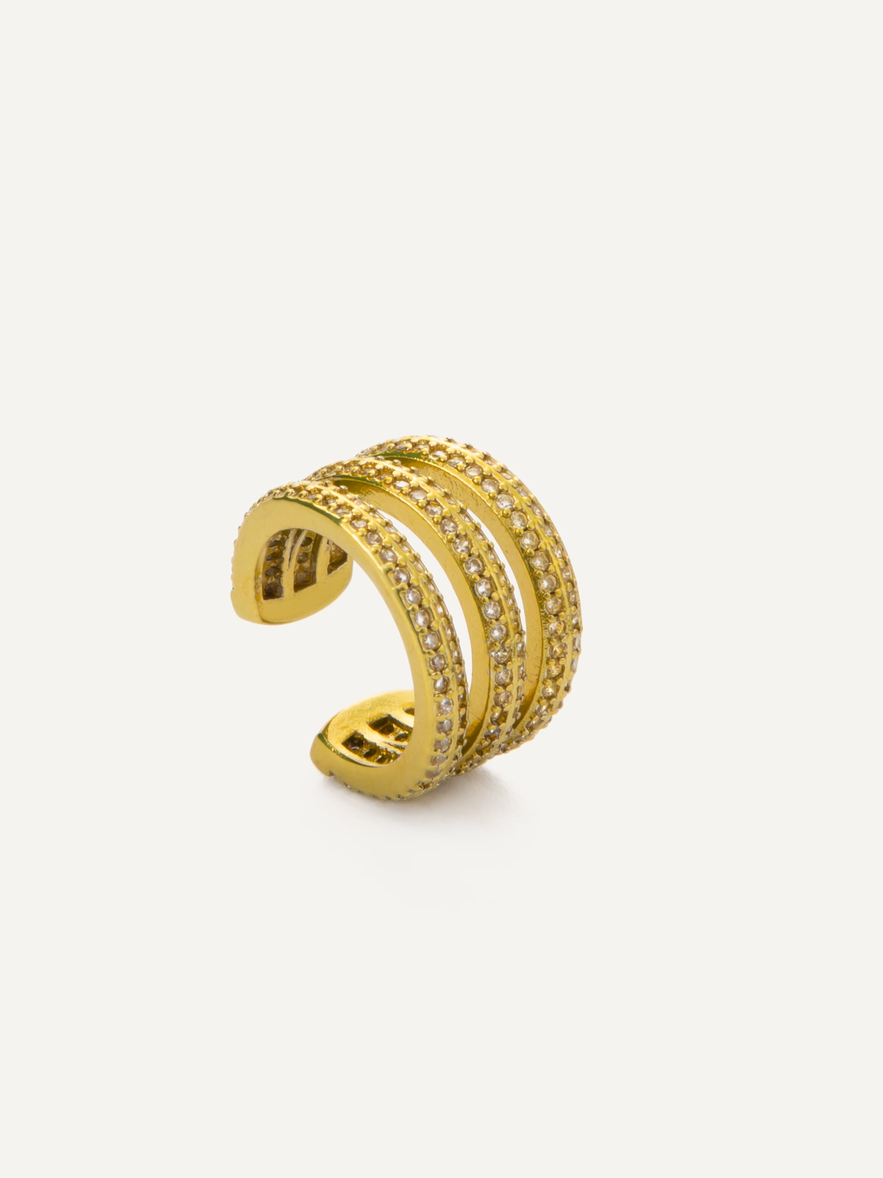 Triple layer dainty ear cuff with cubic zirconia crystals.