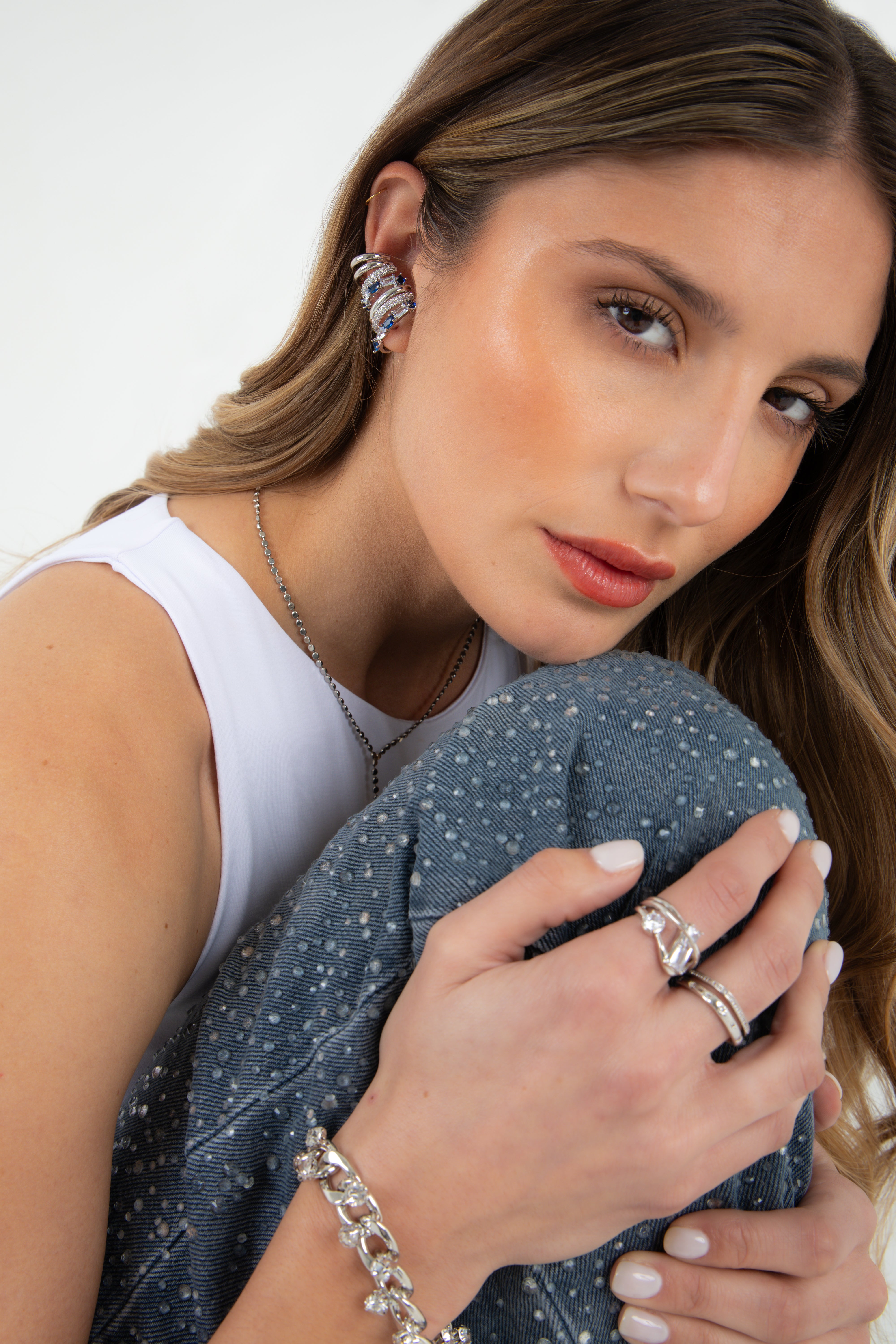 Irregular double band ring with cubic zirconia crystals studded to catch the light and make a statement