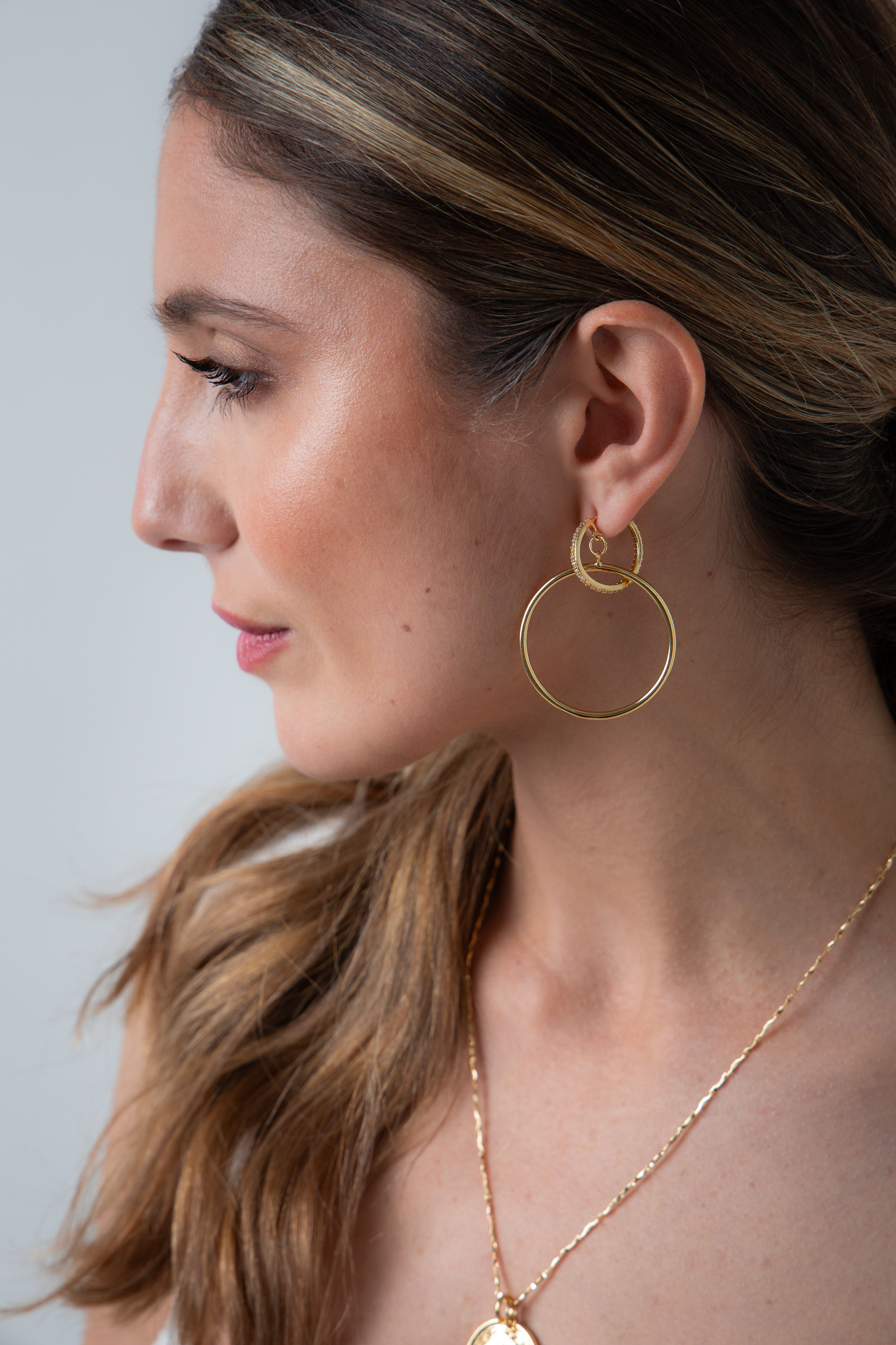 Elegant and classy hoop earrings. Cubic zirconia pave crystal hoop with larger solid hanging hoop.