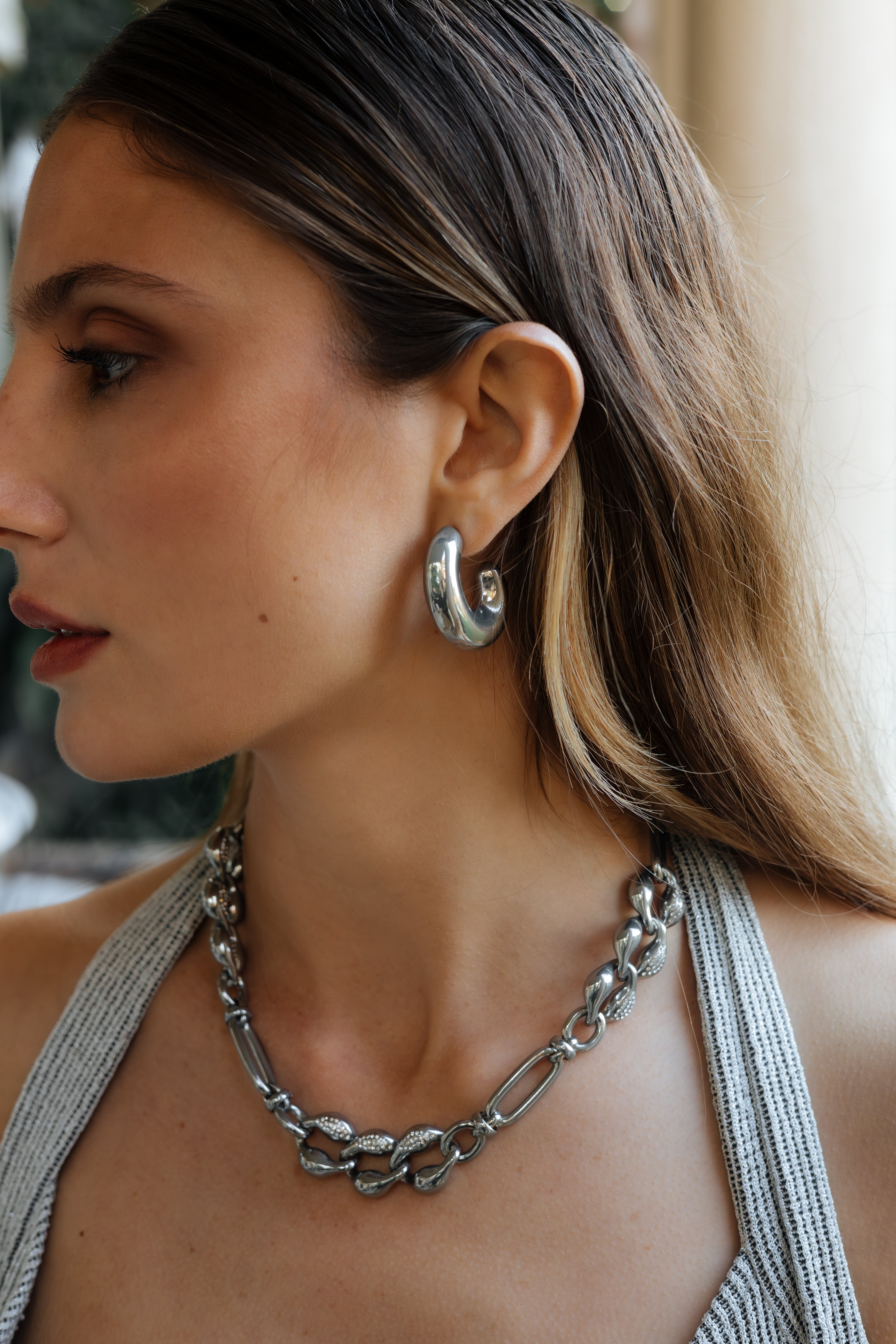 Step into the spotlight with our chunky statement hoop earrings, where boldness meets featherlight comfort.