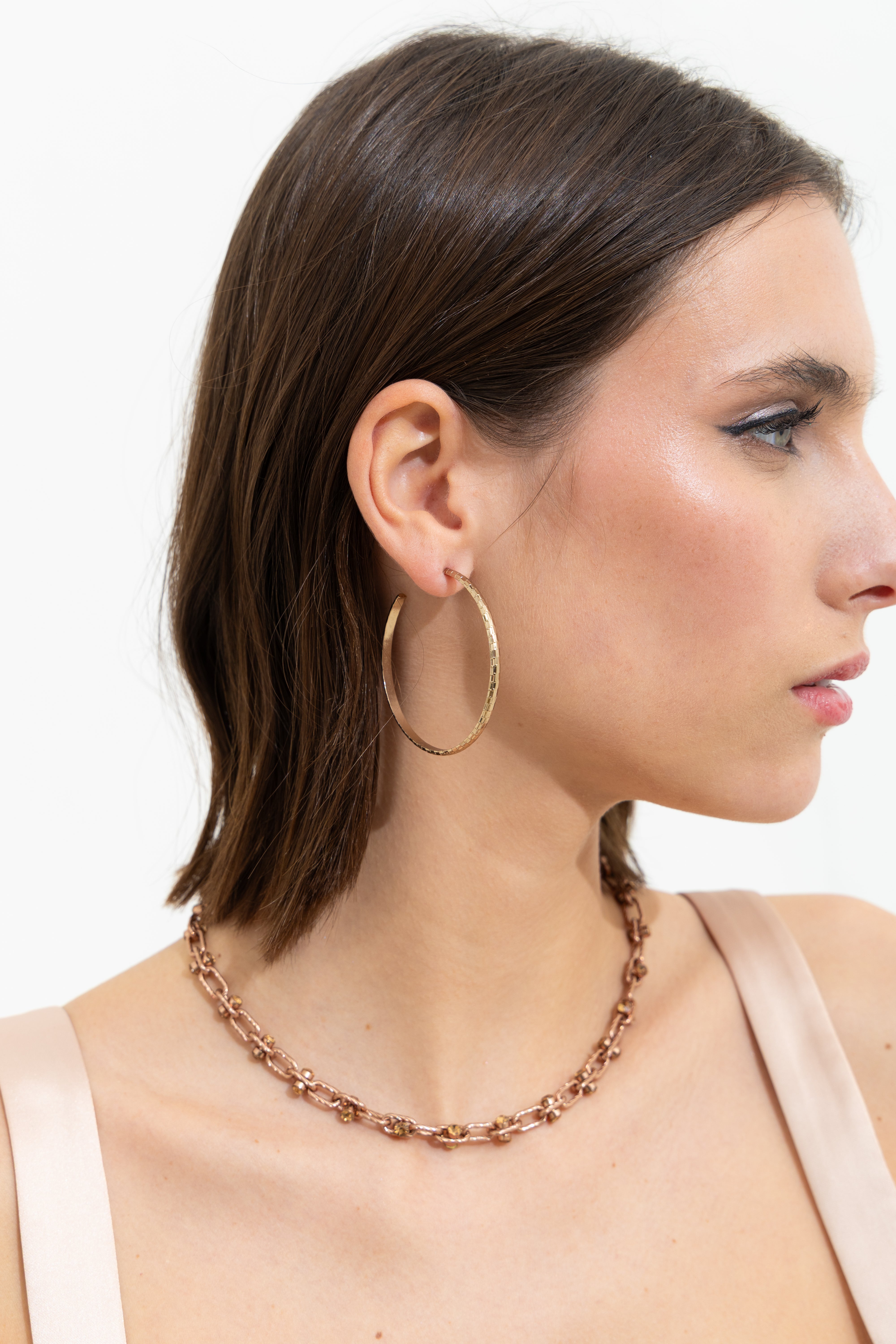 Thin textured hoop earrings. Lightweight.