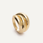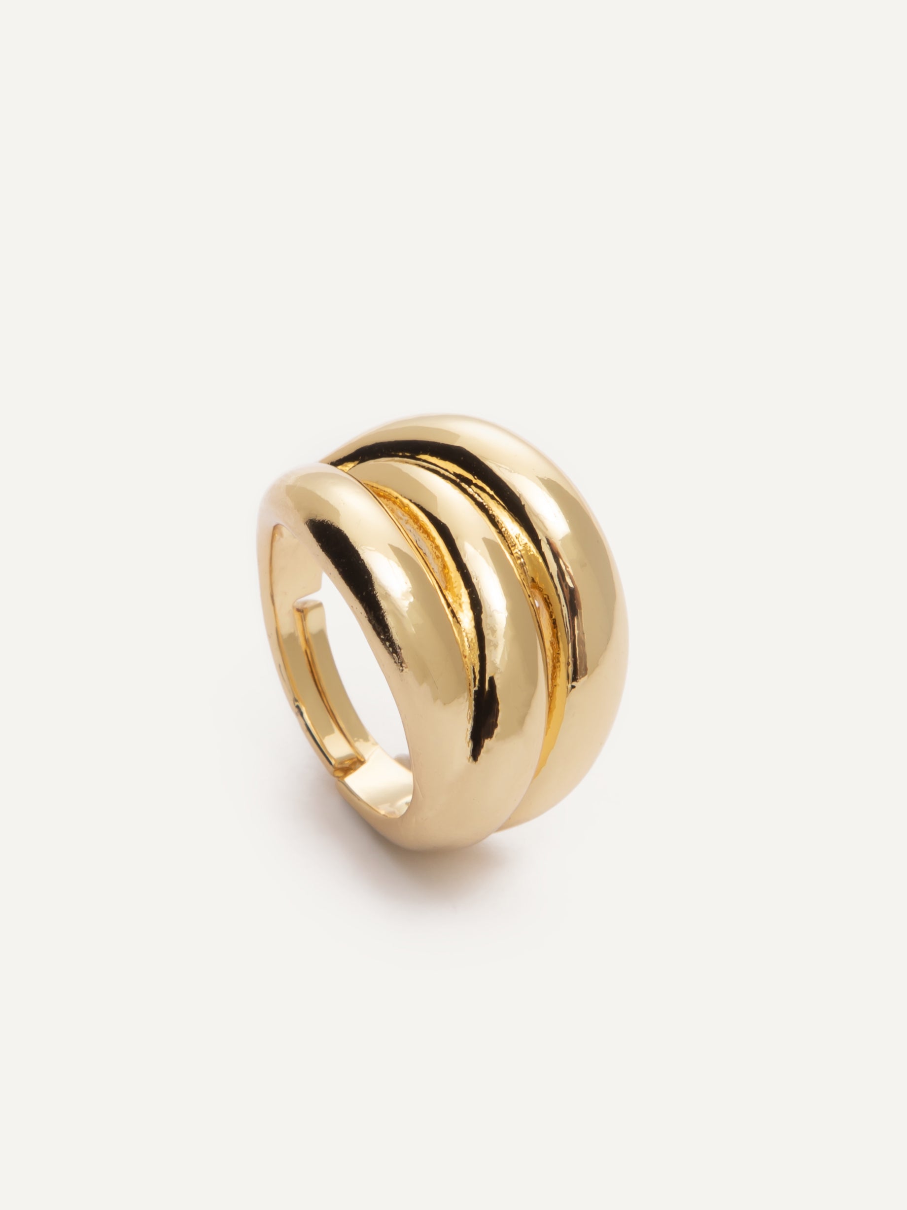Introducing our limited edition Wynn ring: a stunning piece that features three sleek bands seamlessly fused with a smooth, glossy deep red metallic finish.