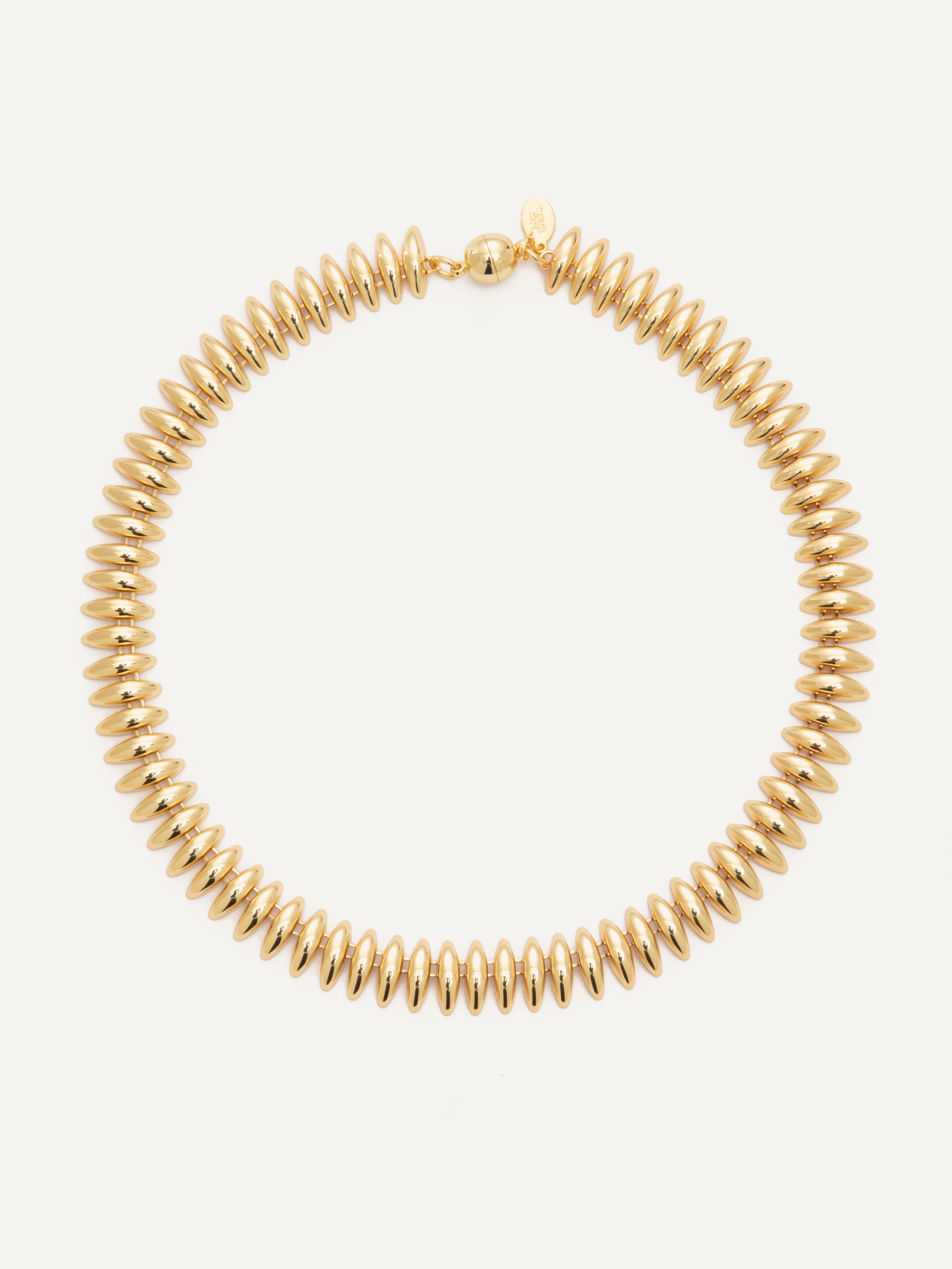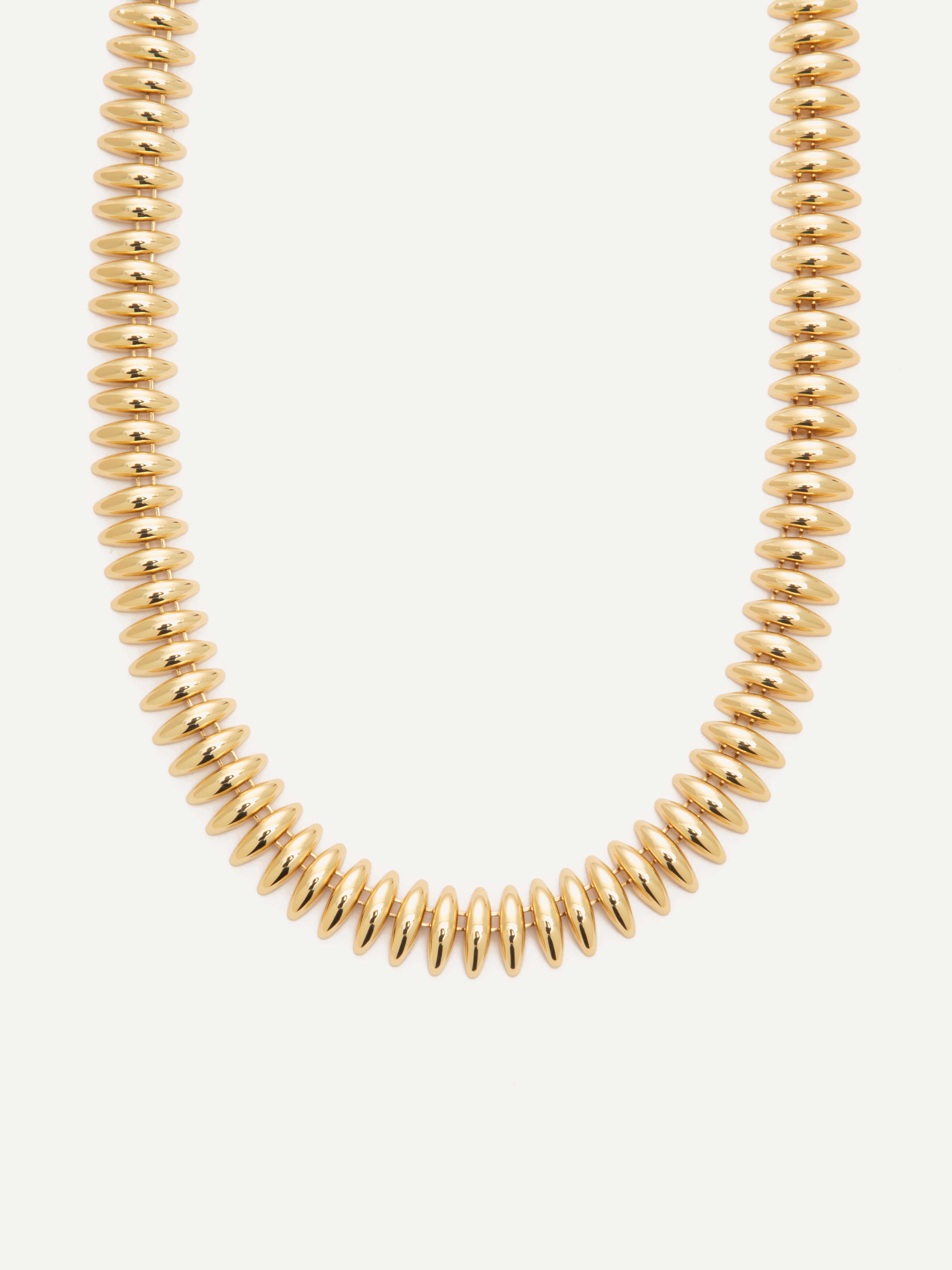 Polished edge. This necklace features a sleek gold-tone disc chain that delivers a bold, sculptural finish—designed to stand out on its own or layer with ease.