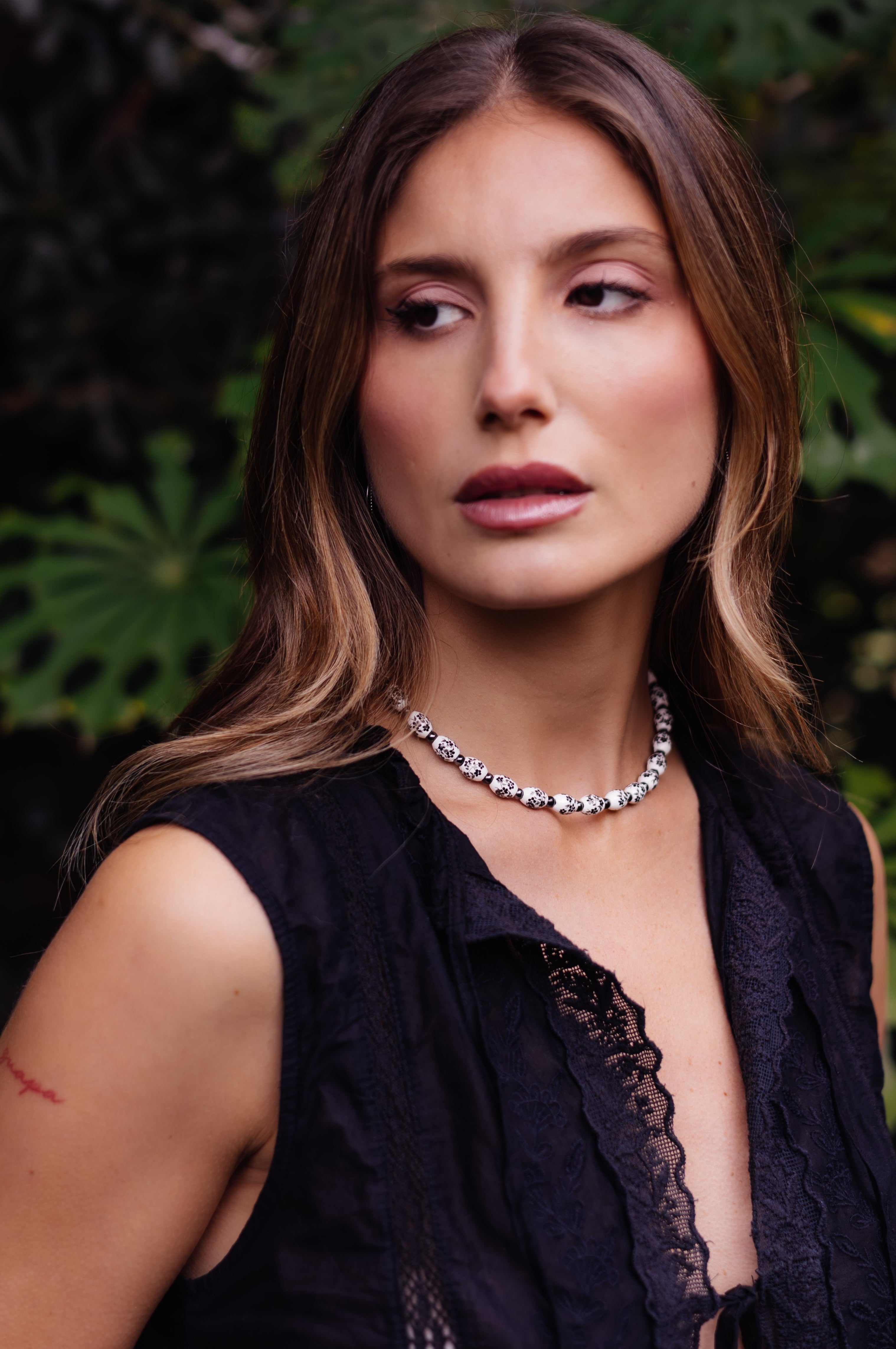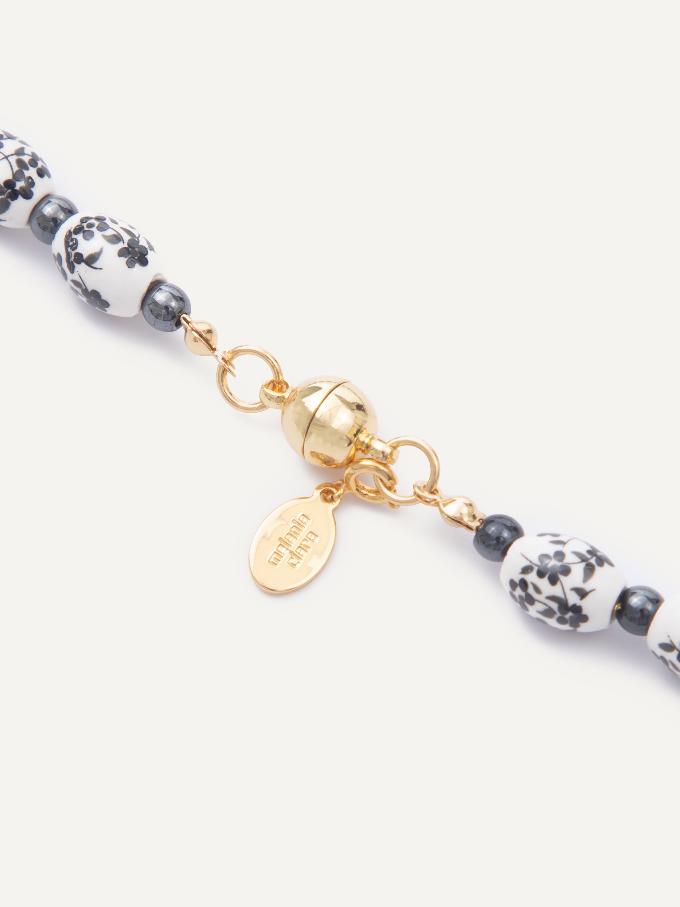 A little boho, a little bold — all you. This floral bead moment mixes vintage charm with downtown edge, perfect for layering or stealing the show on its own. The painted porcelain beads bring the nostalgic vibes, while the hematite beads keep it effortlessly edgy. Finished with our signature magnetic clasp for easy on and off.