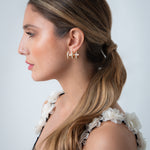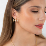 Multi-hoop illusion earrings adorned with pavé crystals, creating a layered look in a single statement piece.