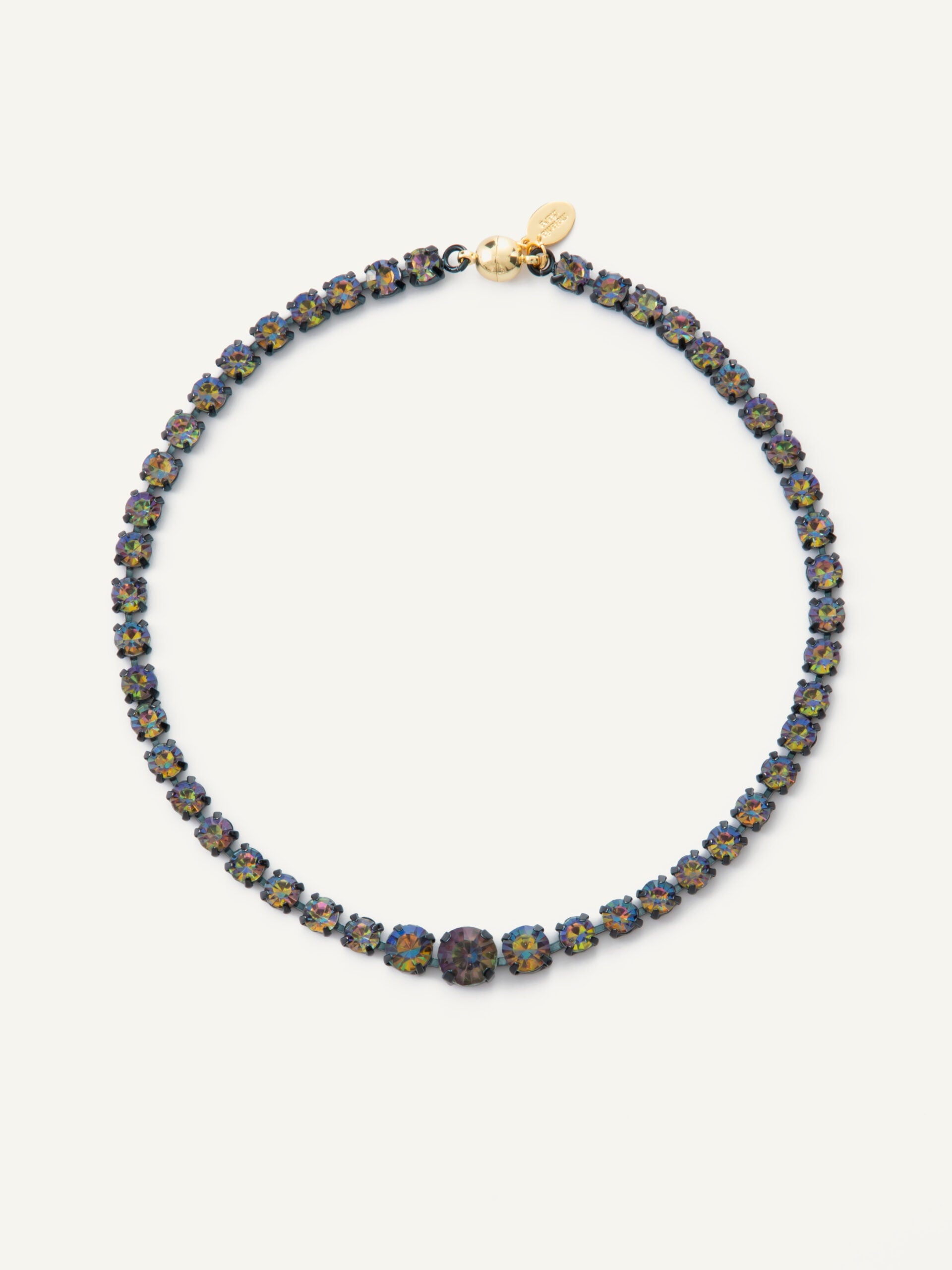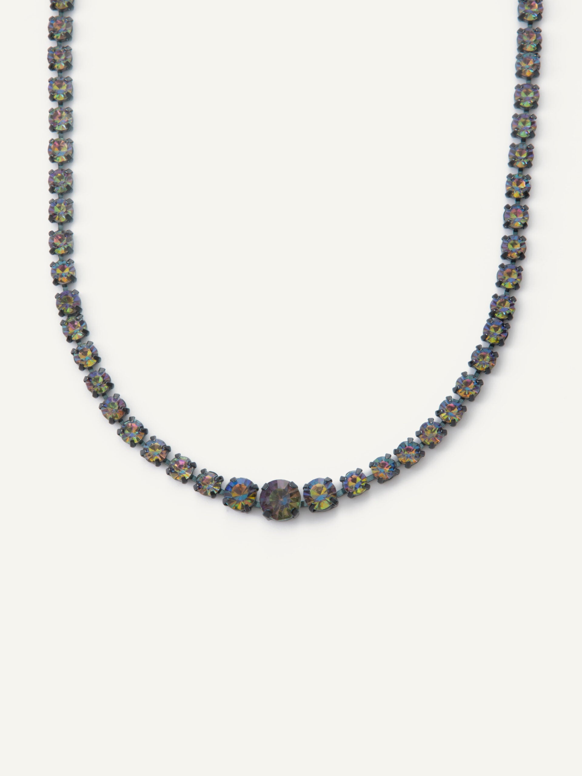 A stunning and glamorous piece that commands attention. This necklace features a lavish display of crystals, perfect for adding a touch of sparkle to any occasion.