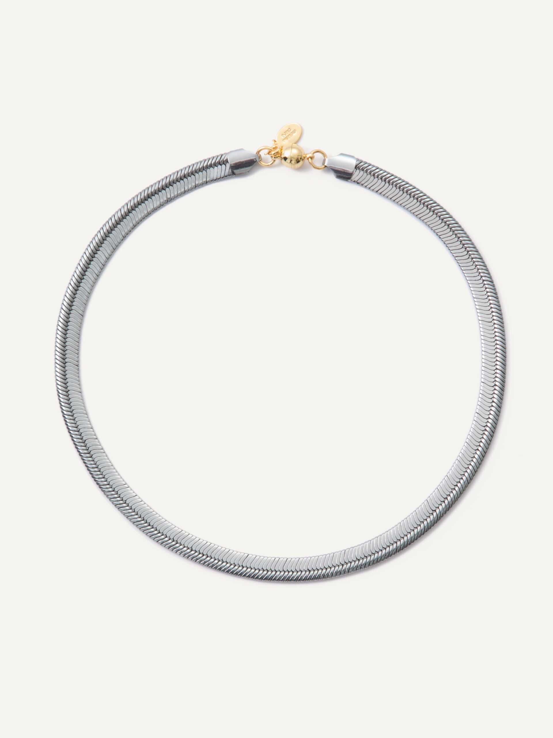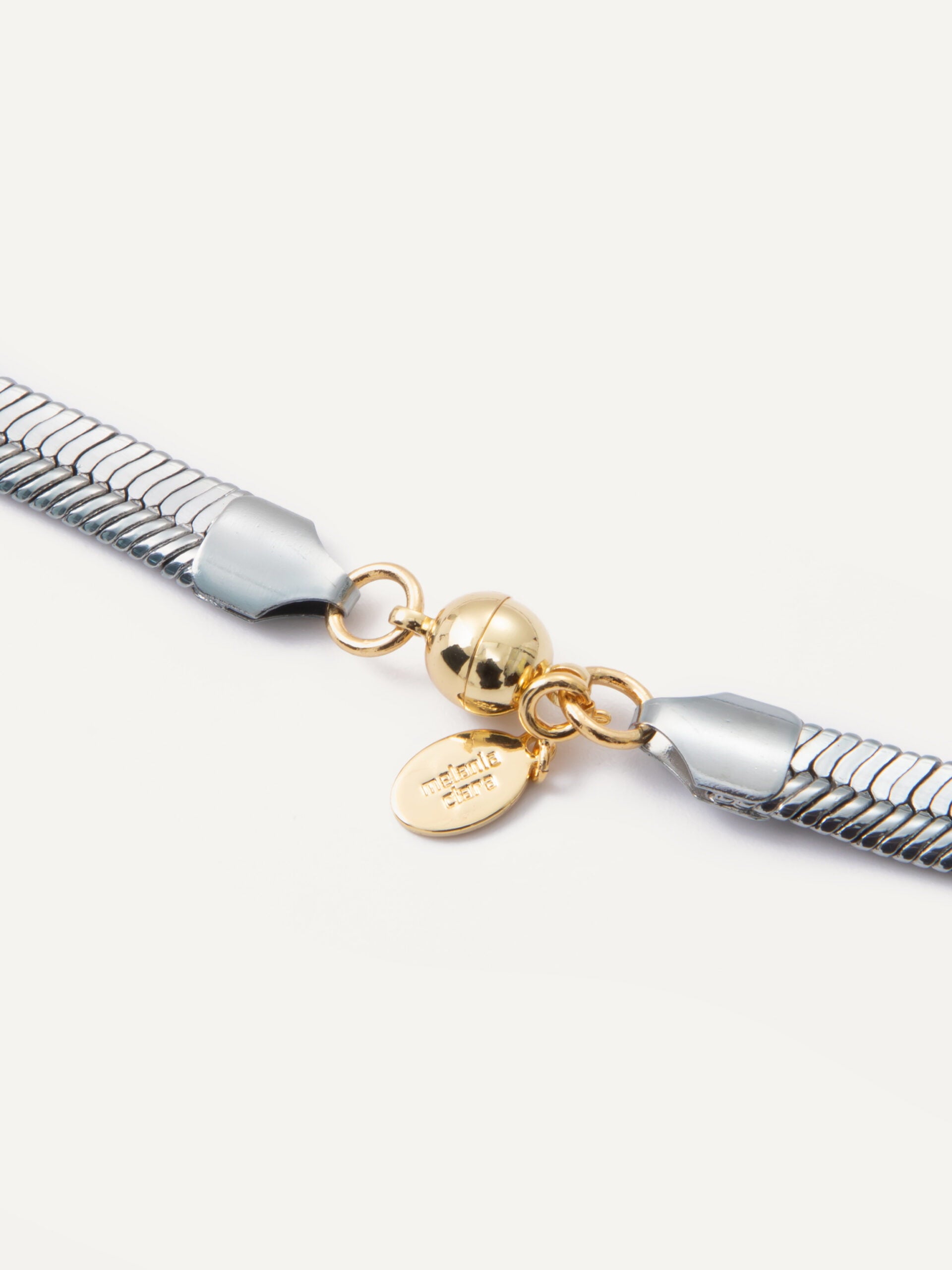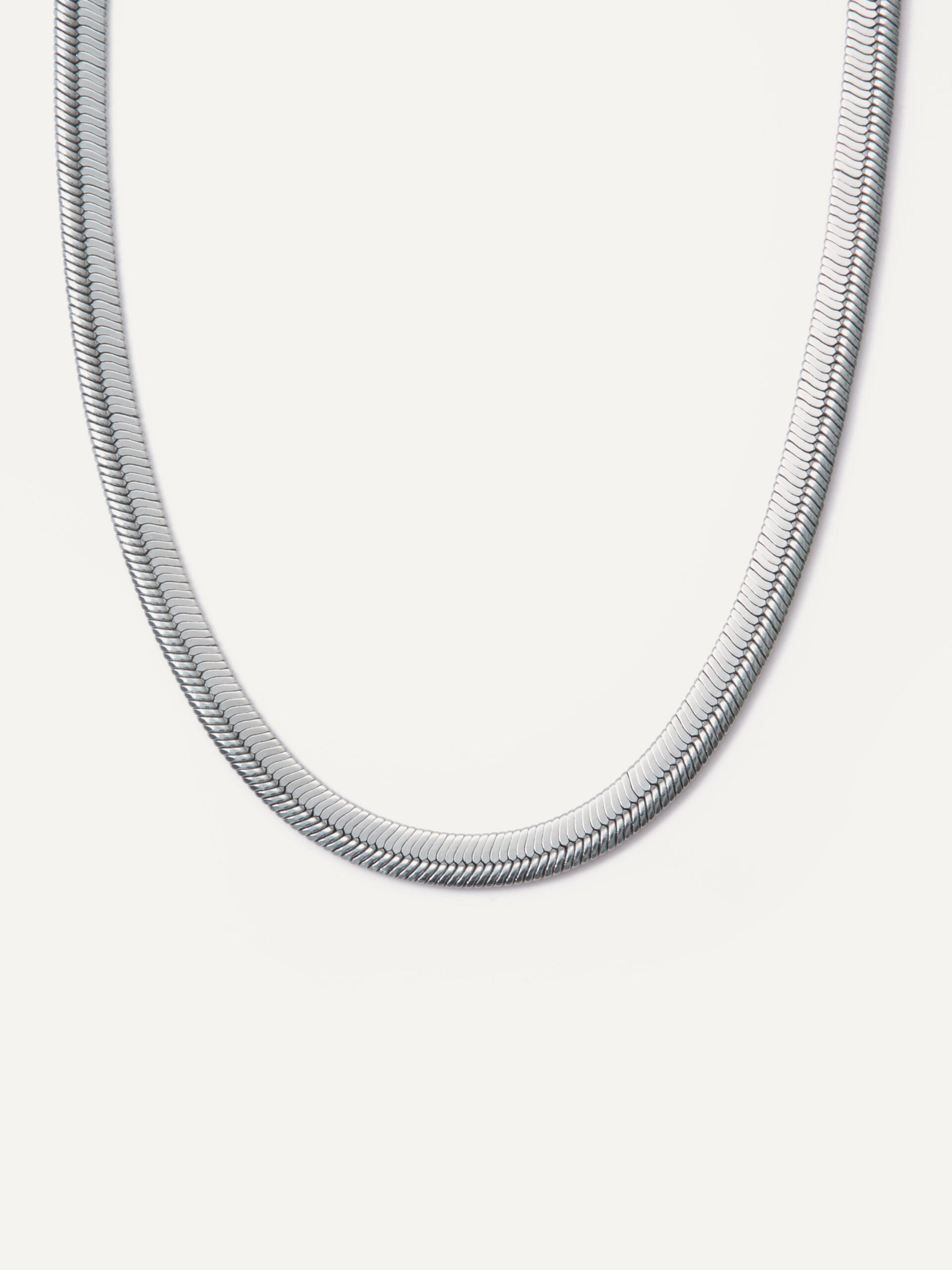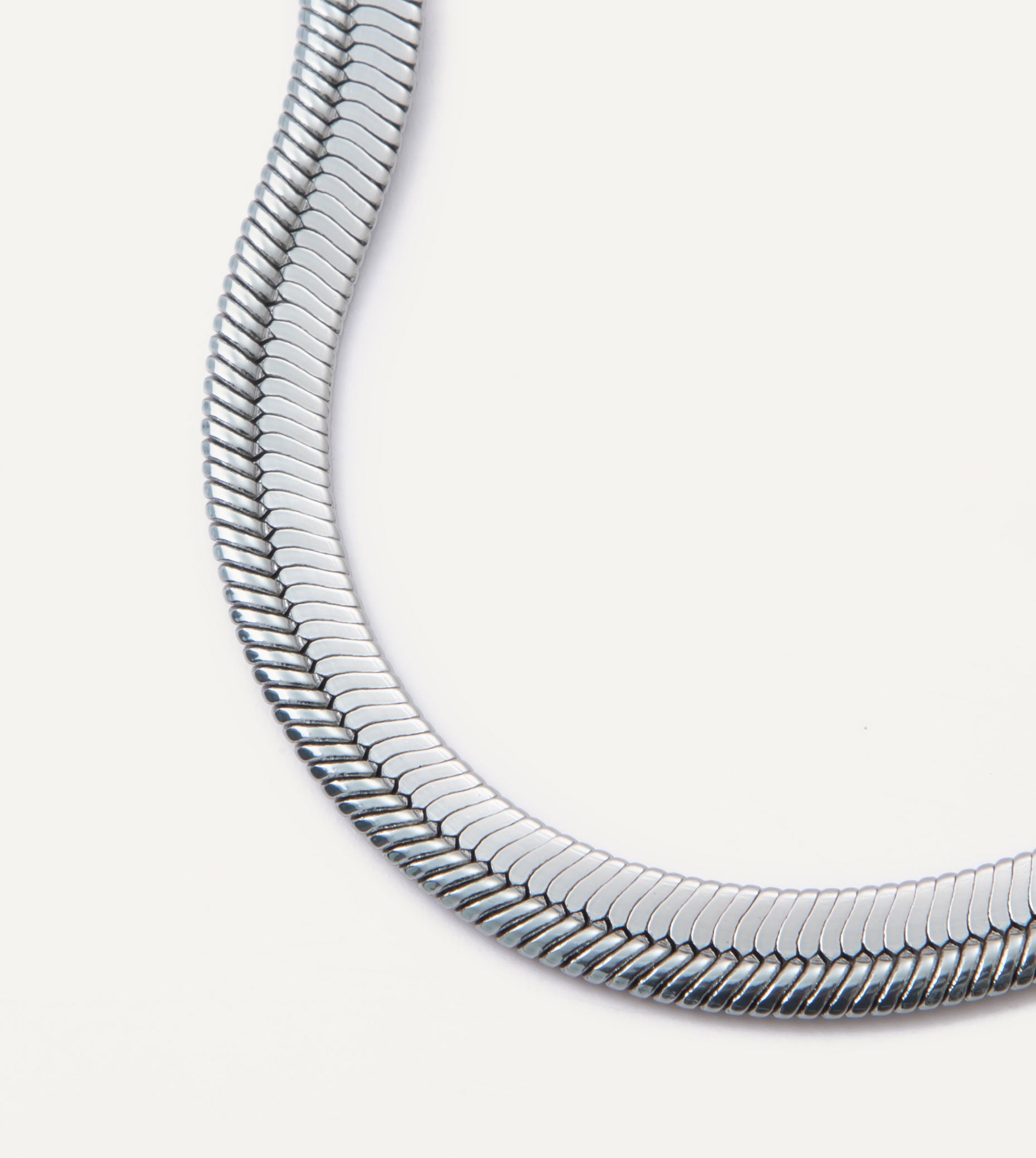 Reimagine classic elegance with our unique take on the must-have snake chain. The sleek, sinuous detail create a refined silhouette, adding a touch of modernity to a beloved classic.