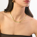 Reimagine classic elegance with our unique take on the must-have snake chain. The sleek, sinuous detail create a refined silhouette, adding a touch of modernity to a beloved classic.