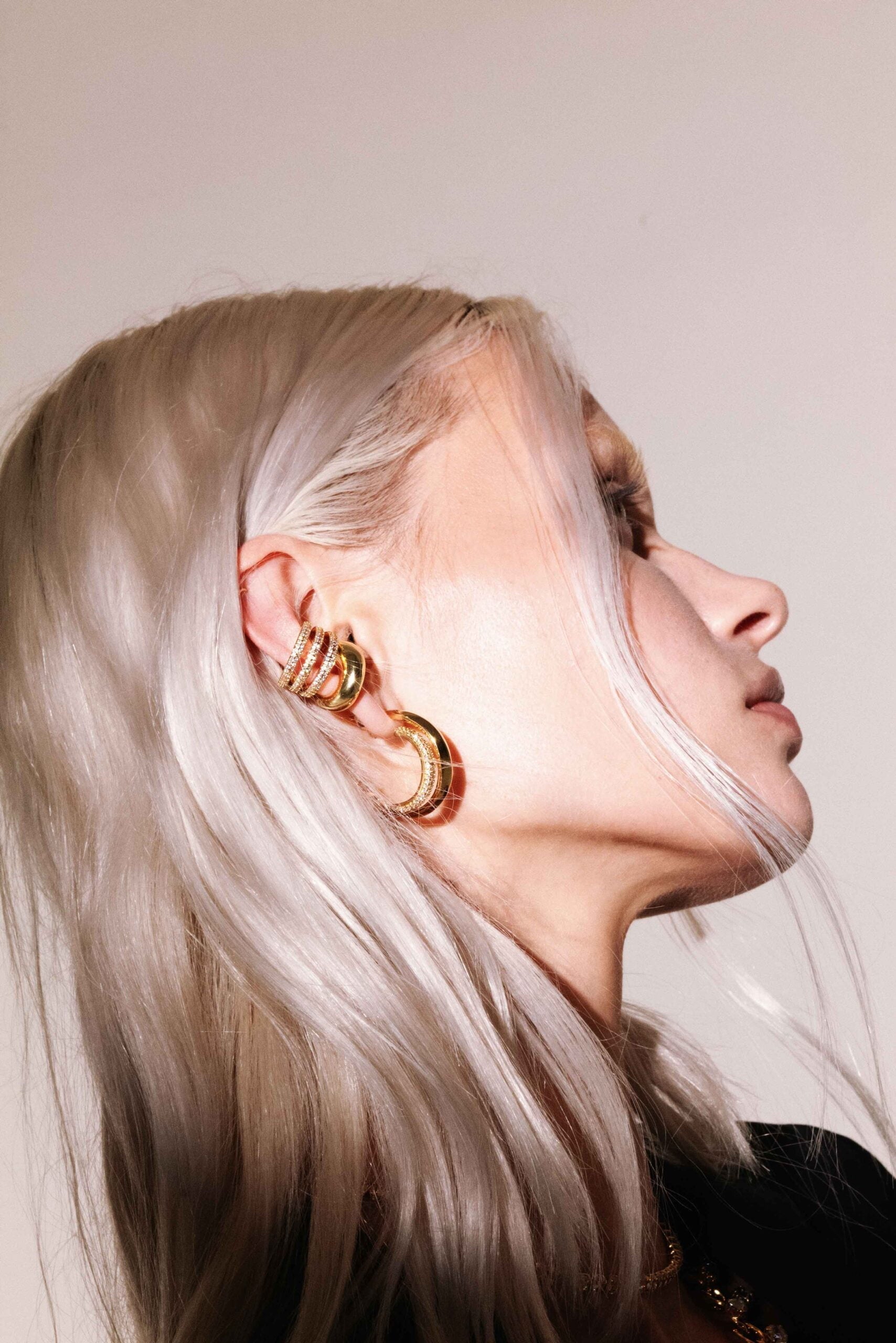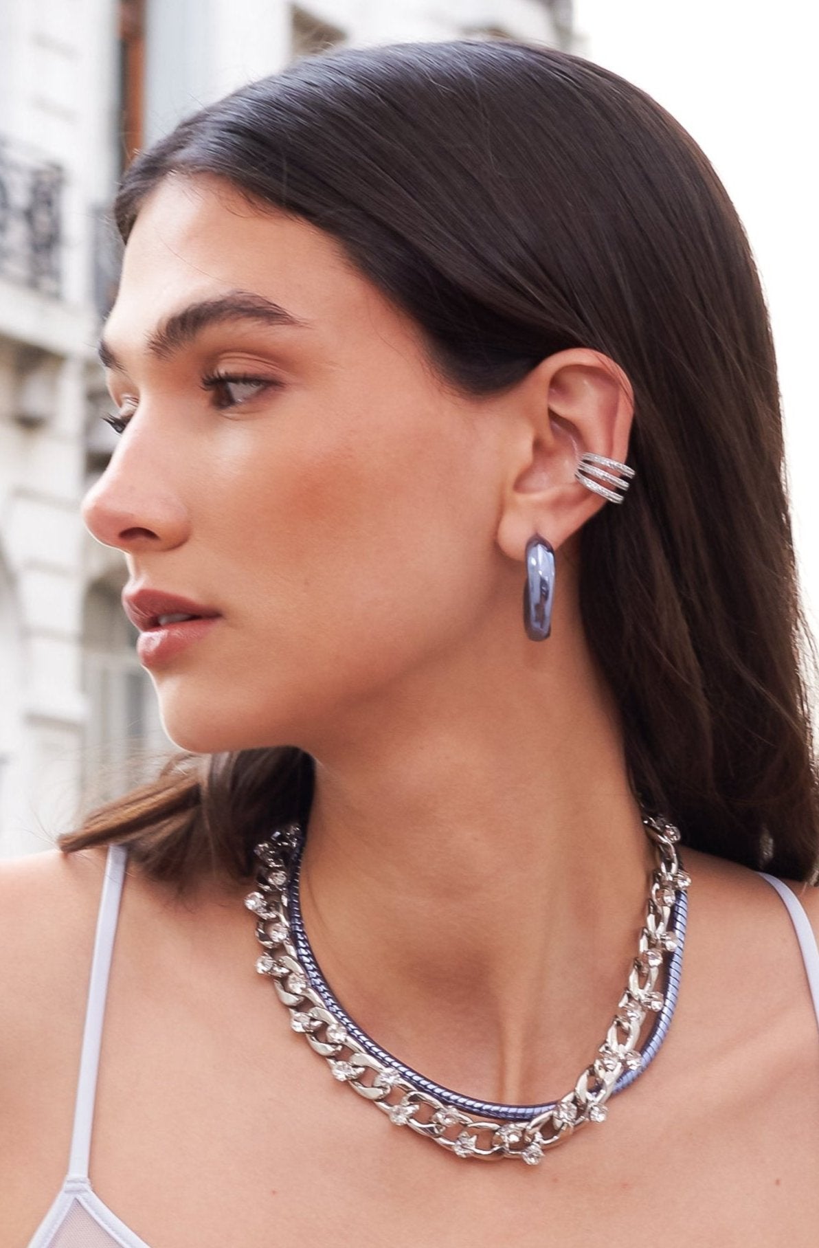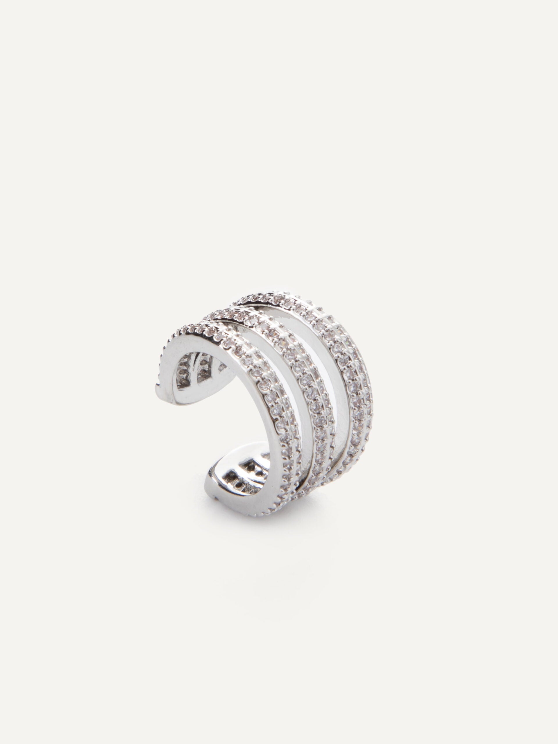 Triple layer dainty ear cuff with cubic zirconia crystals.