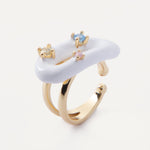 Make a bold statement and elevate your ear game effortlessly with Daisy, a funky ear cuff with a unique, edgy vibe. Enameled and with multicolor cubic zirconia crystals.