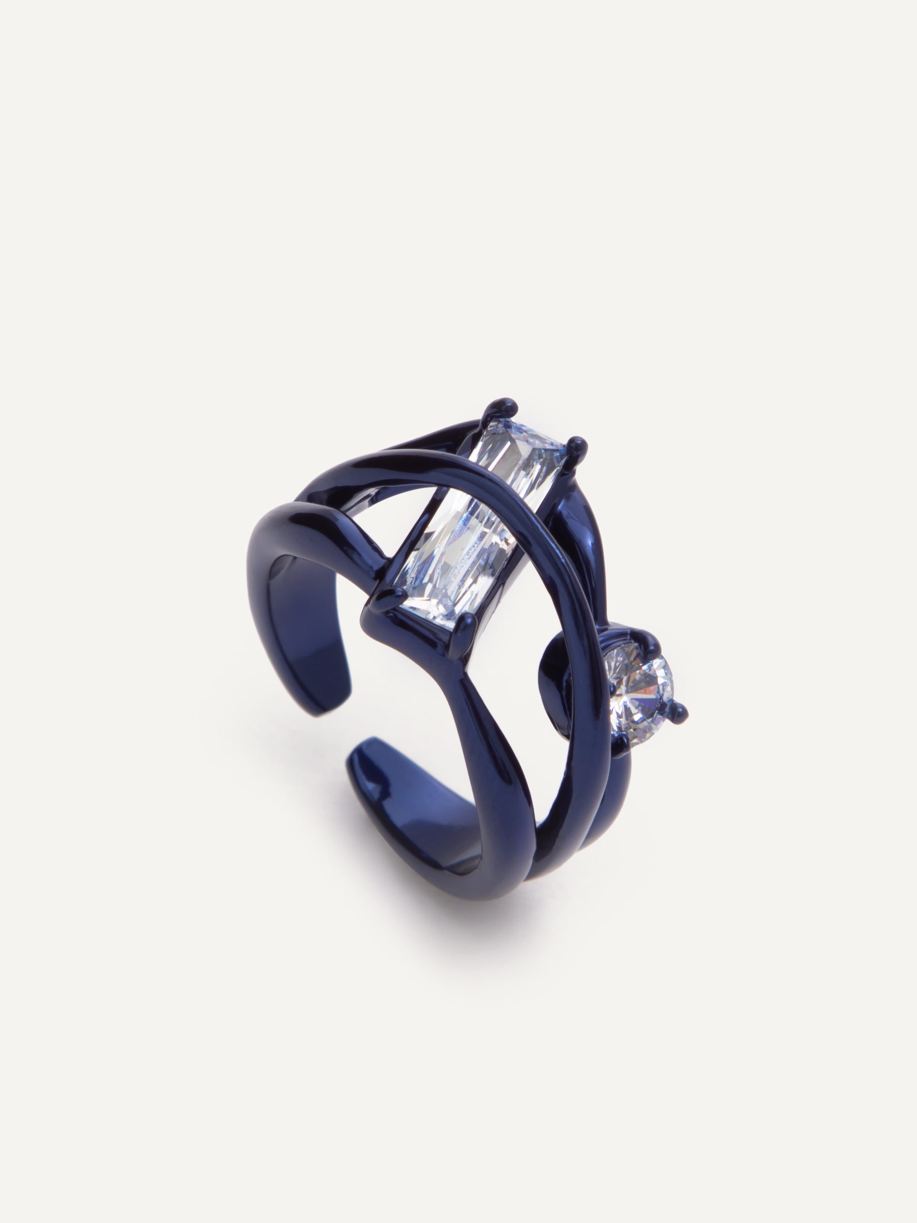 Irregular double band ring with cubic zirconia crystals studded to catch the light and make a statement