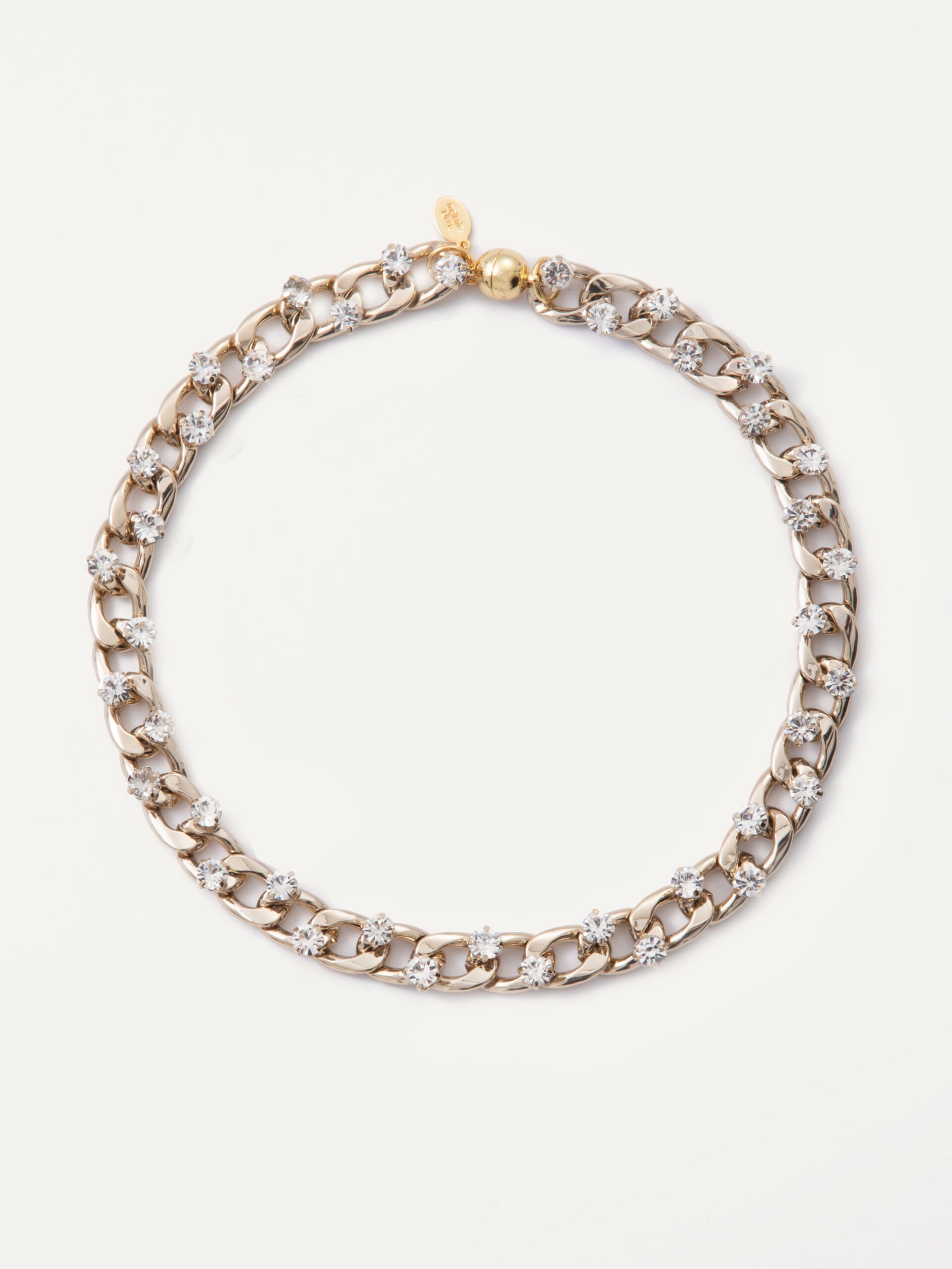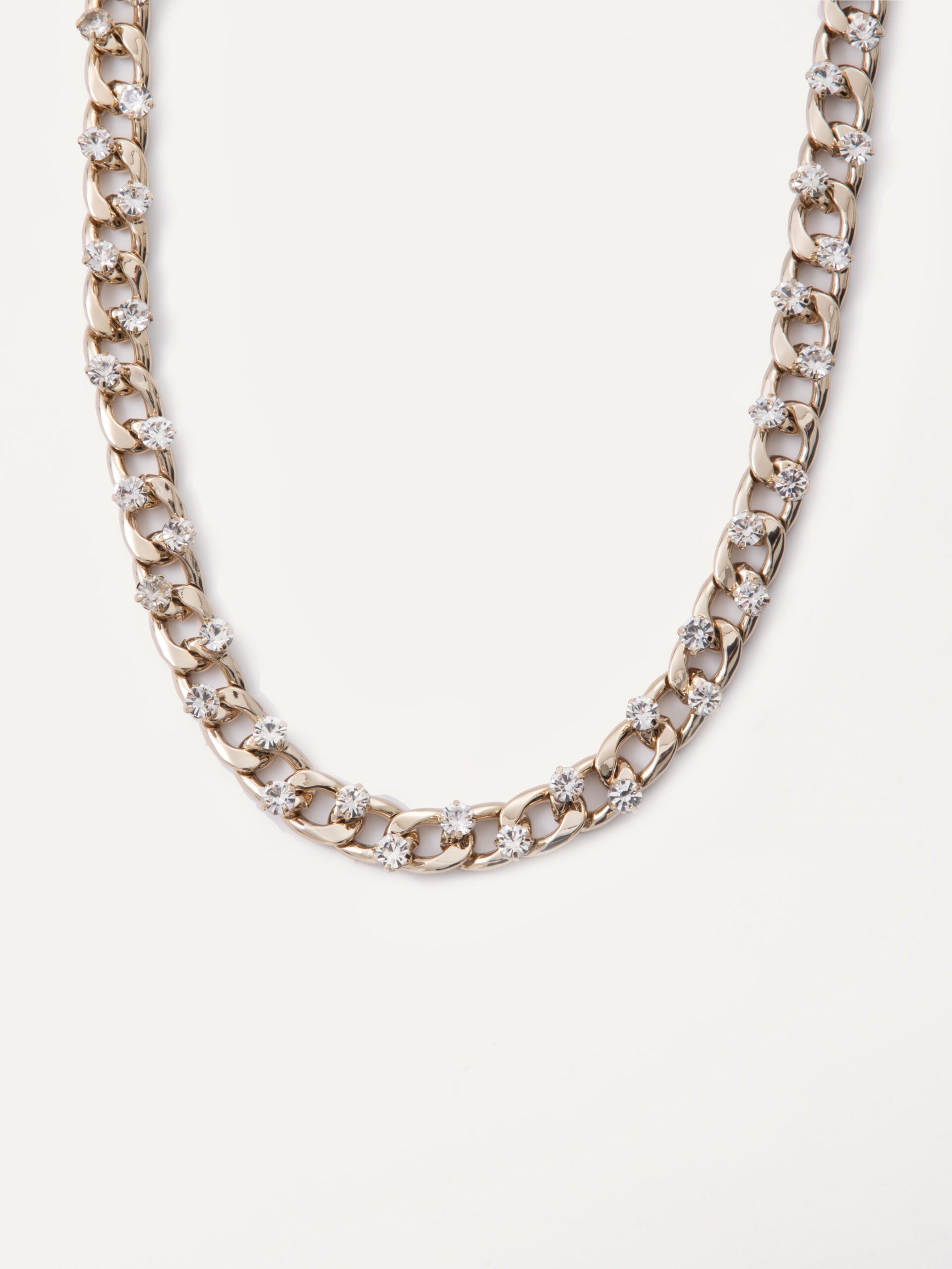 Timeless elegance with a modern edge: Chunky chain necklace with large protruding handset crystals.
