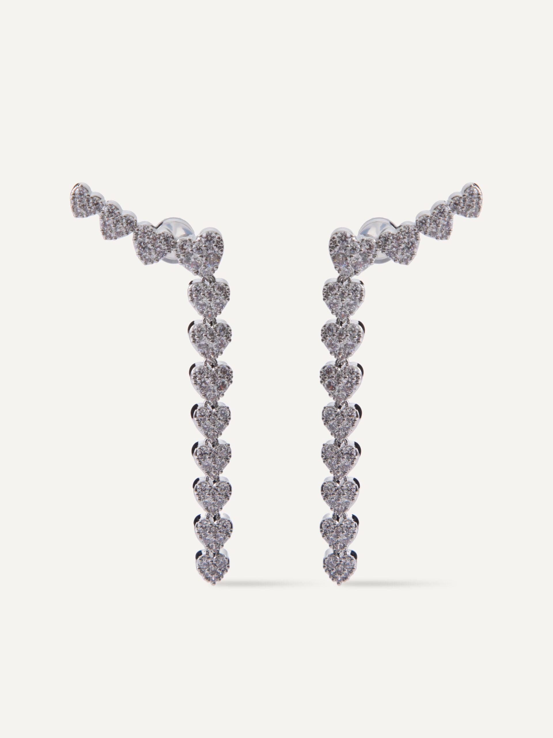 Cubic zirconia heart-shaped climber earrings with hanging heart strand