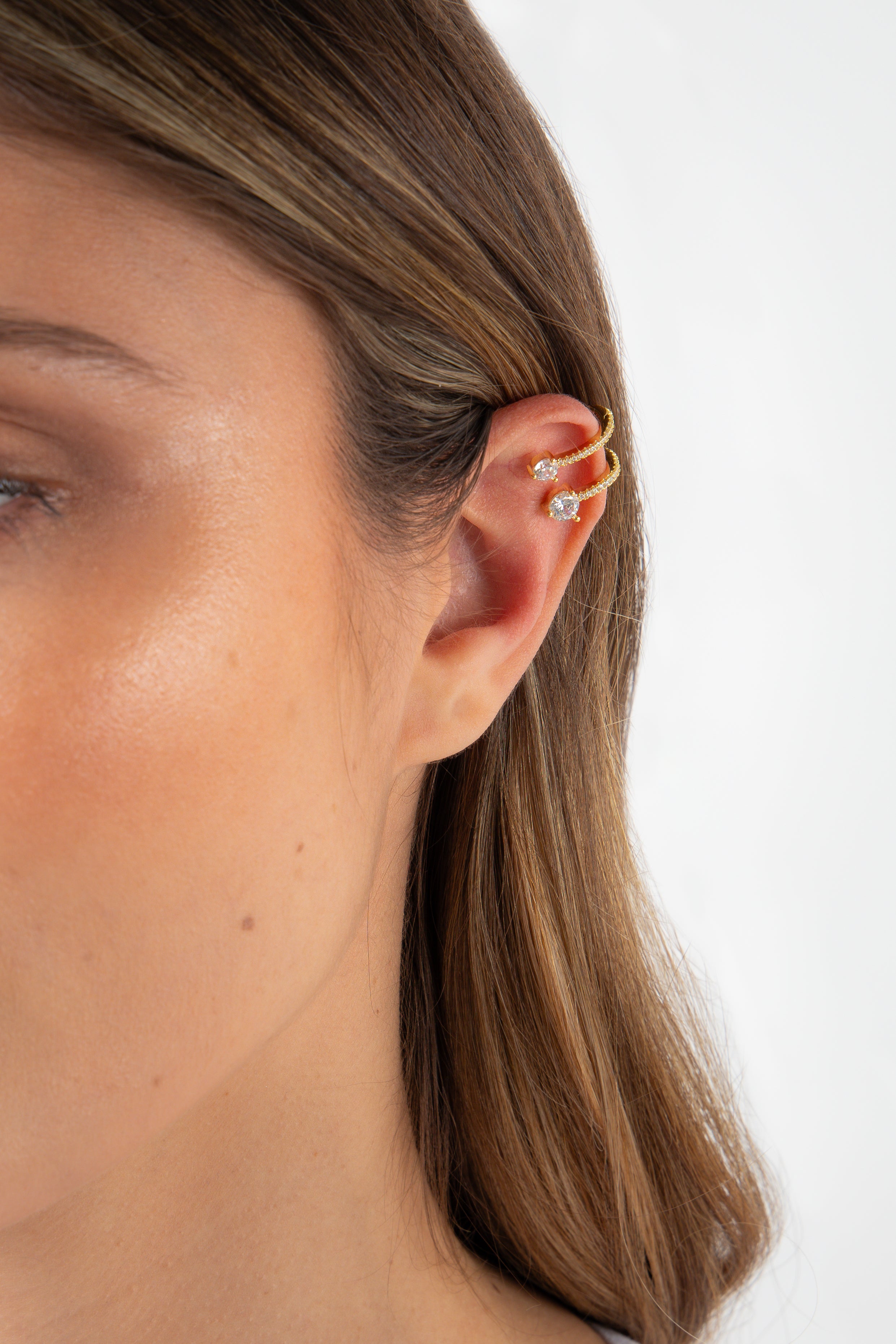 A sleek crystal-lined ear cuff featuring a bold solitaire stone, designed for a modern, sculpted sparkle.