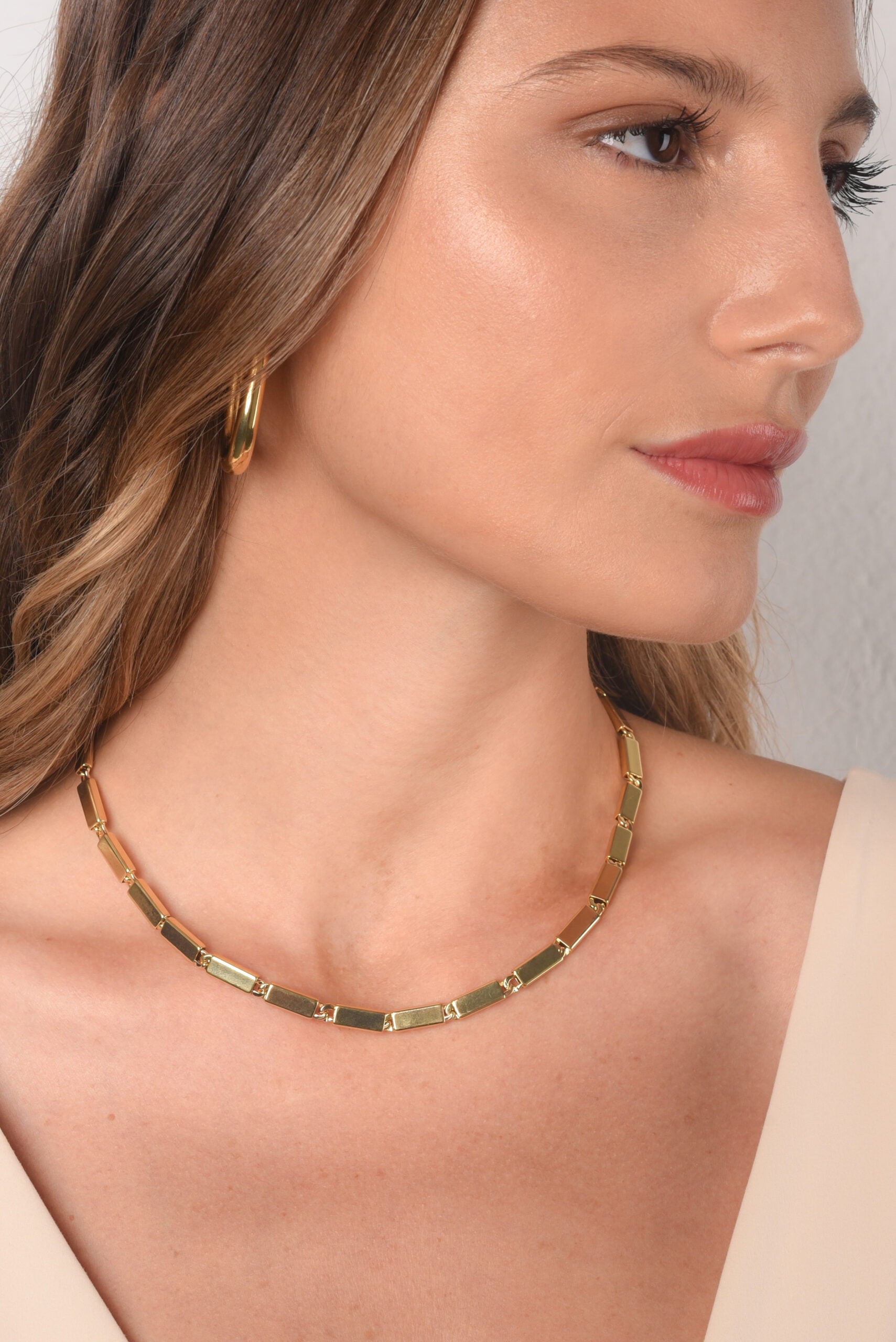 The solid polished rectangle links of this necklace exude an aura of elegance, making it the perfect choice for those special occasions when you want to shine. The Los Angeles necklace is the ultimate piece to effortlessly transition from formal events to everyday wear.