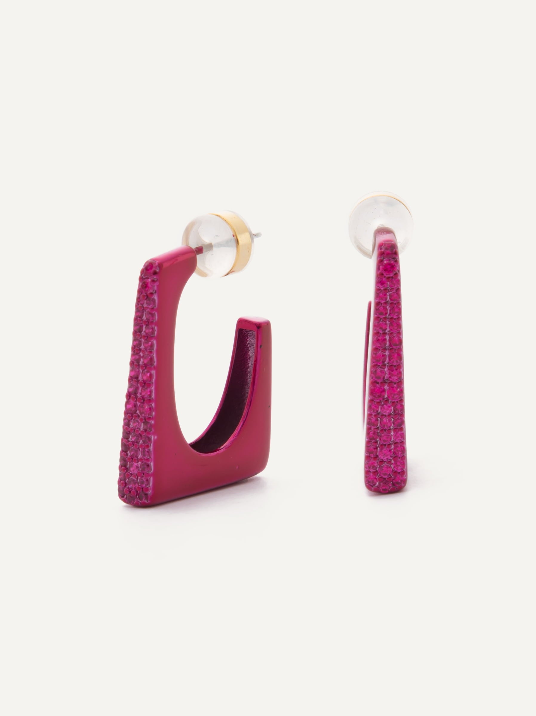 Rectangular flat hoop earrings with cubic zirconia crystals.