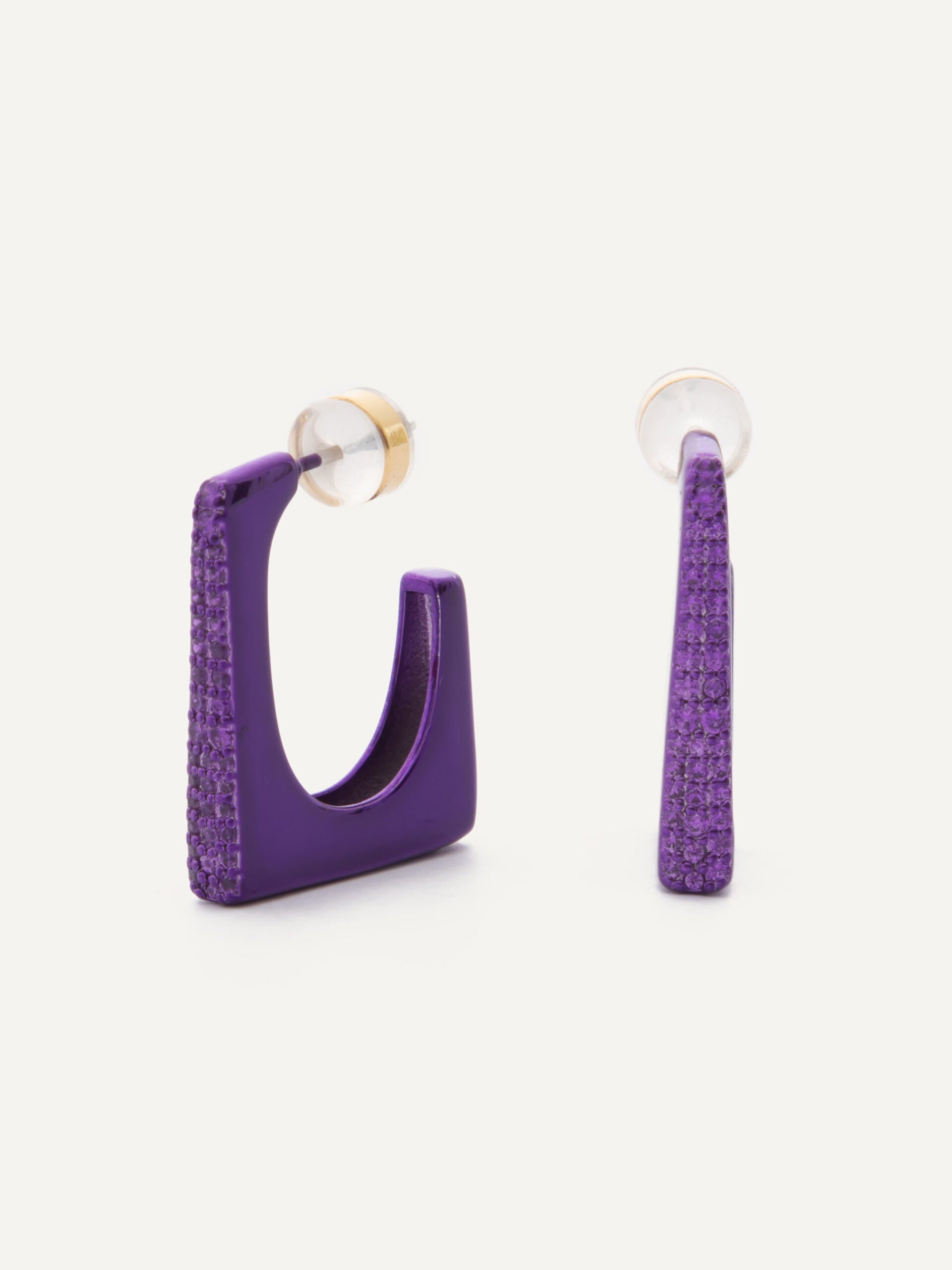 Rectangular flat hoop earrings with cubic zirconia crystals.